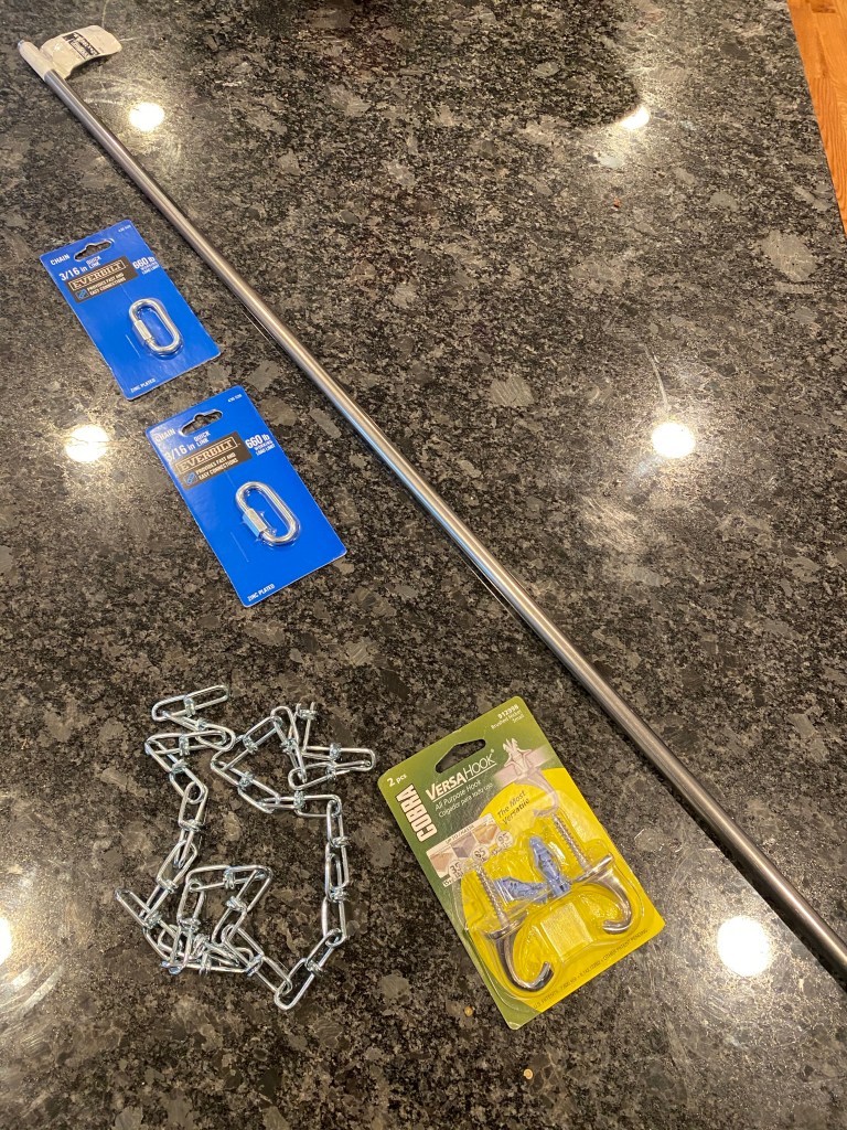 I originally wanted to buy S-hooks and squeeze them onto the rod. Unfortunately, I couldn’t find any hooks that were large enough to go around my 1/2” rod and thin enough to easily bend so I had to make my own.