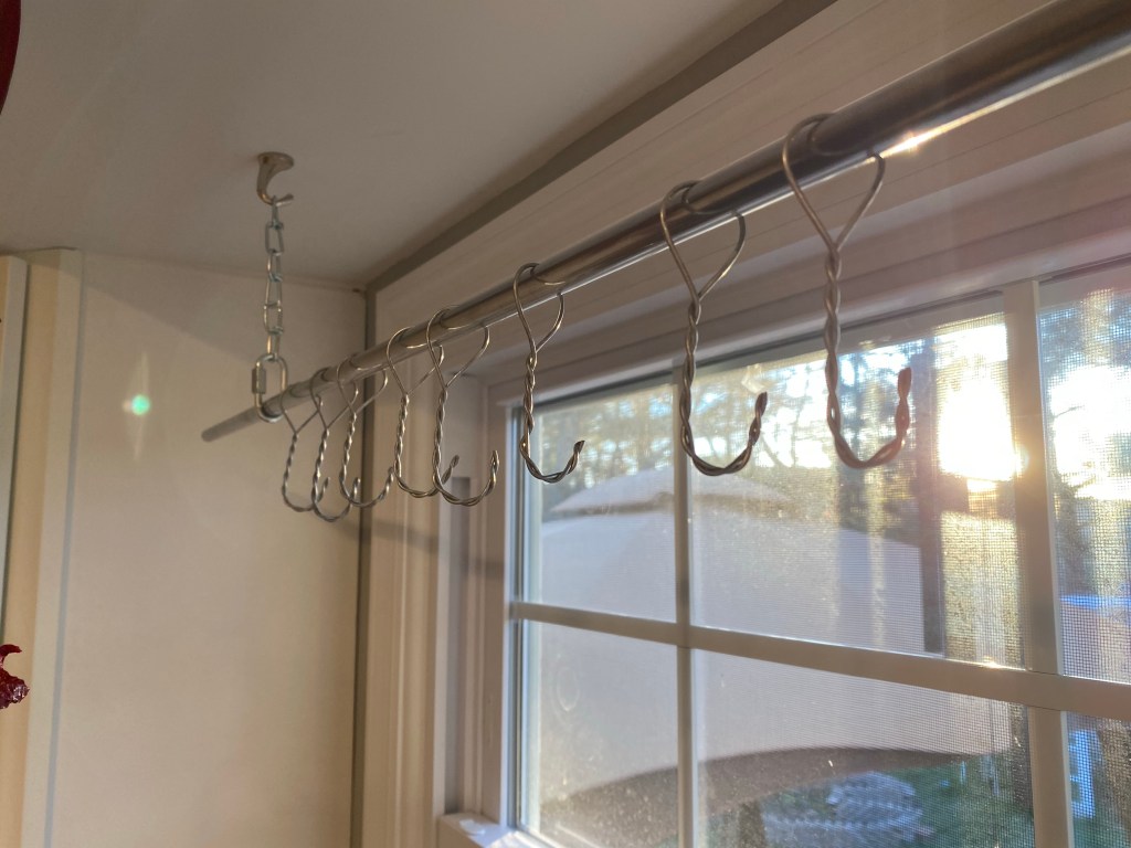 At the old house, she ran a string across the kitchen window to dry her herbs. She wanted something that looked better and would be more permanent.
