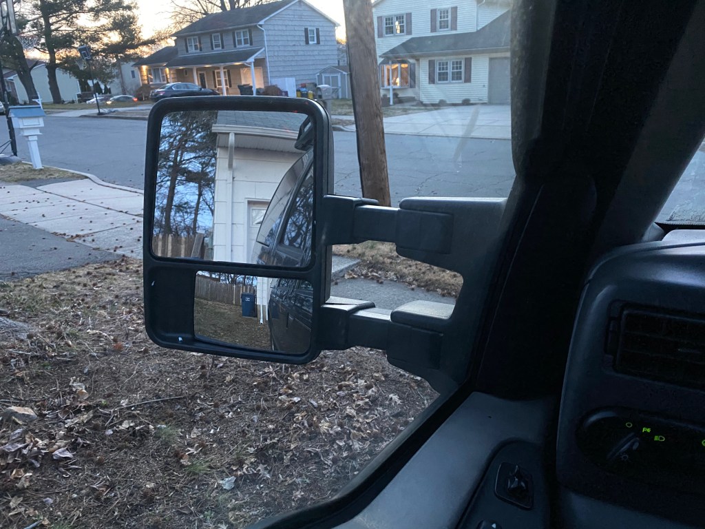 The replacement mirrors have marker lights and turn signals behind a smoked lens as well as turn signals mounted in the glass. Additionally, I can pull the mirror further away from the truck to increase the view when I’m pulling a trailer