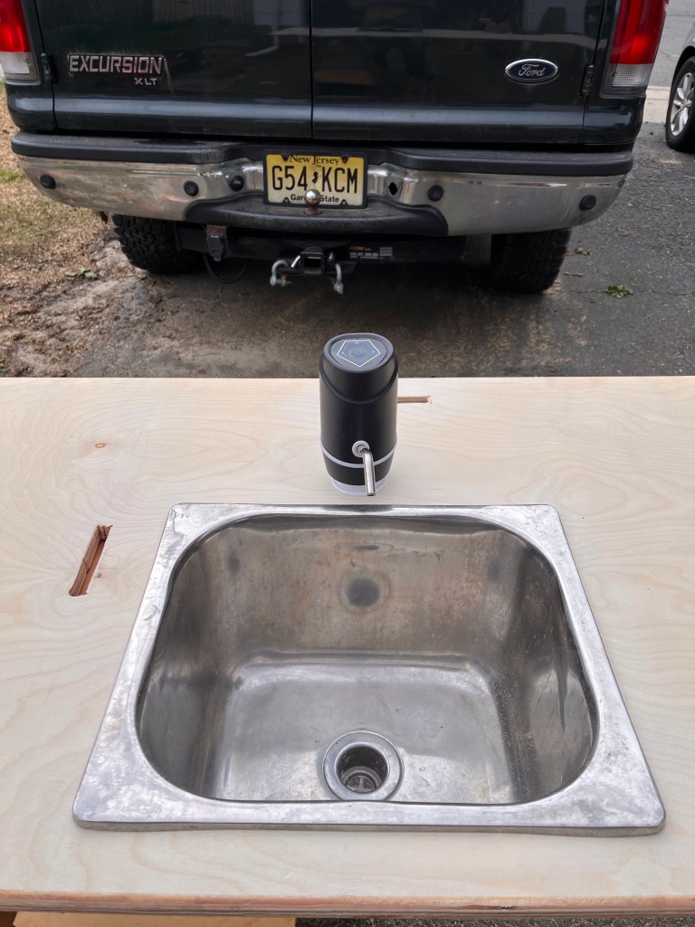 The “faucet” is new this year. I bought this from Amazon for $13. It’s designed to go onto a 5 gallon bottle, so I had to come up with a way to mount it on top of my countertop.