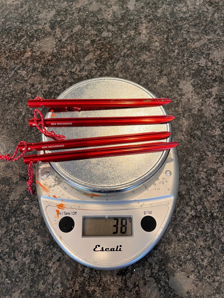 The MSR mini groundhogs are a joy to use, though they are quite painful if you try to push them in by hand. No worries on that though, they are short enough that they are easy to push in with your boots.