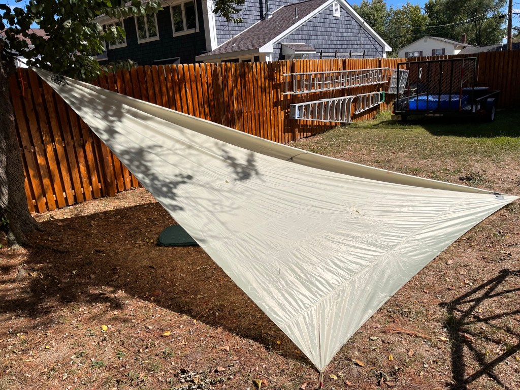 I’d like to keep experimenting by lowering the ridge line and also by using a smaller tarp.