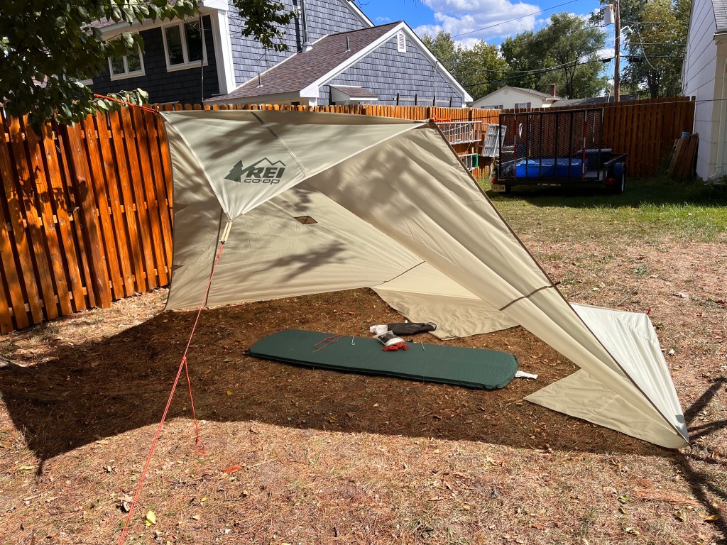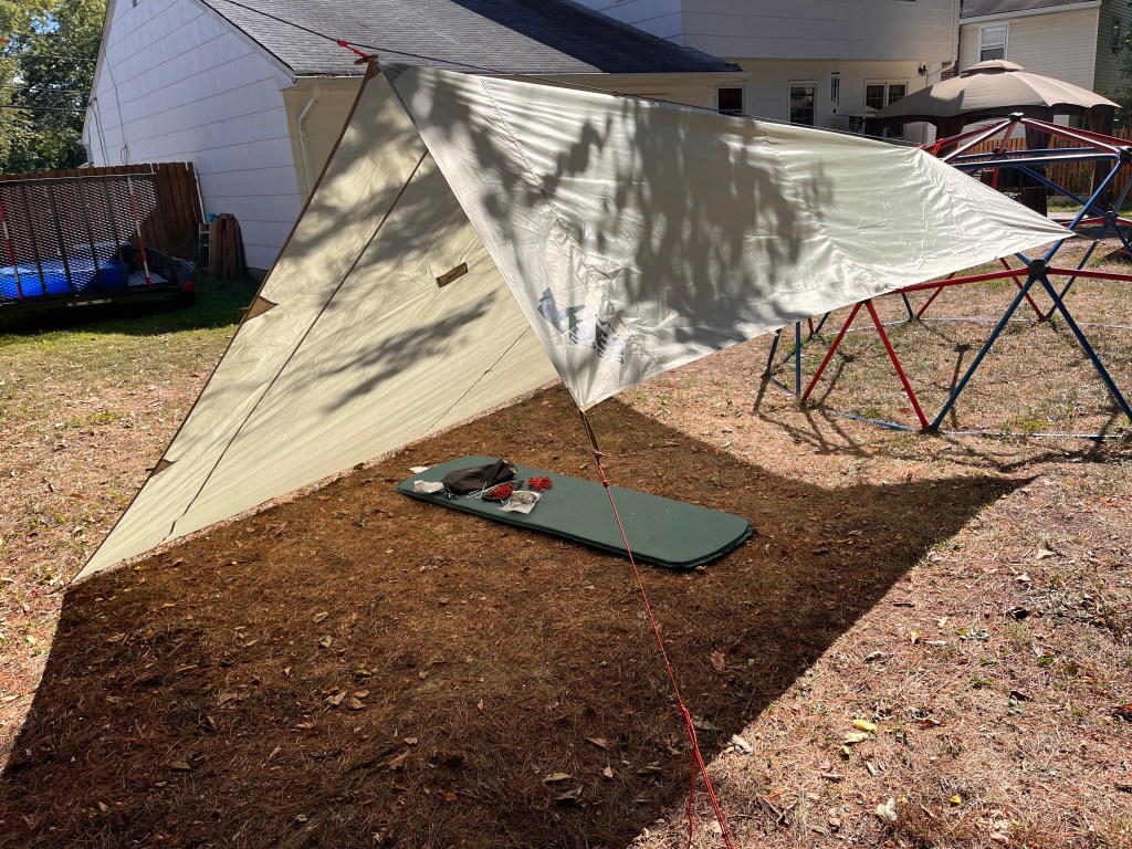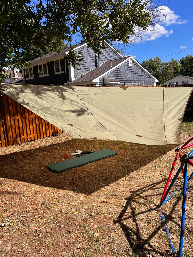 Played with it in the yard today to try out some different pitches. I threw a single sleeping pad inside to give a sense of scale. The 12×12 is giant for a single camper.