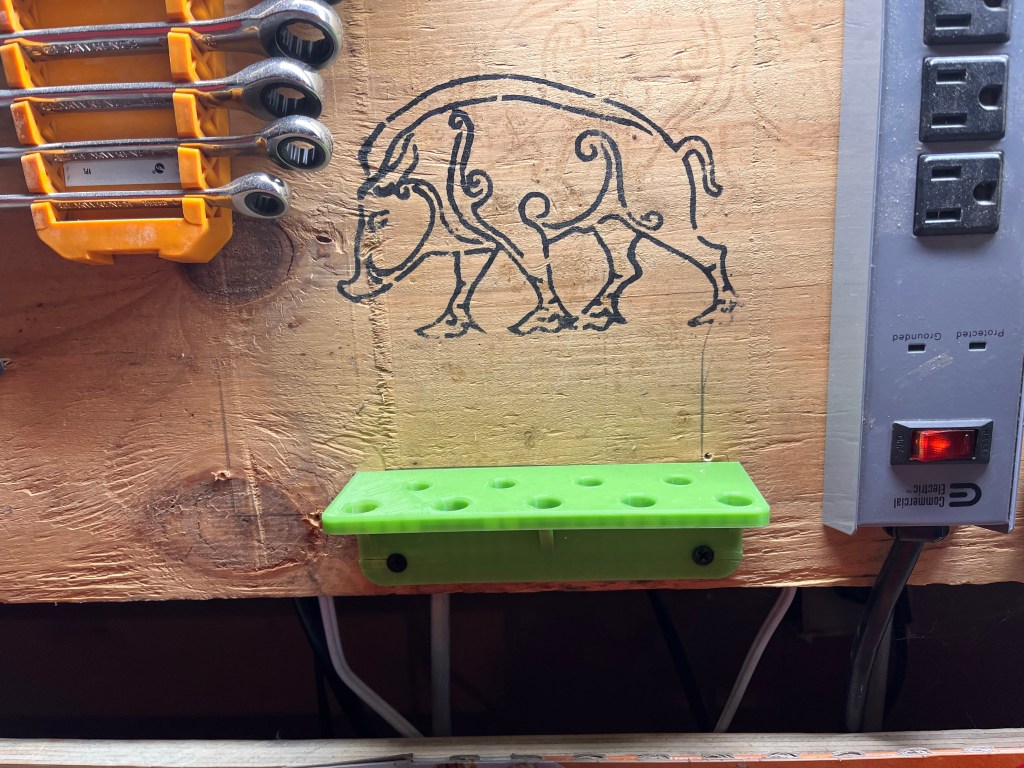 And now I know why my buddy upgraded. This printer is limited to a 150mm print volume. A cube six inches on a side for those of us who think in yank units. The screwdriver holder is too big (or the printer is too small). Looks like I’m going to have to download & learn the modeling software after all.