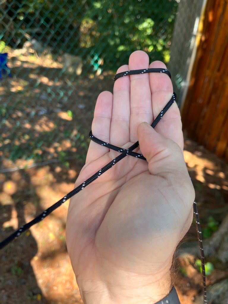 The ridge line is a critical, but fairly simple part of the tarp setup. I started with a 50’ length of reflective paracord. Some people use a 30′ long line, this one may become shorter in the future.