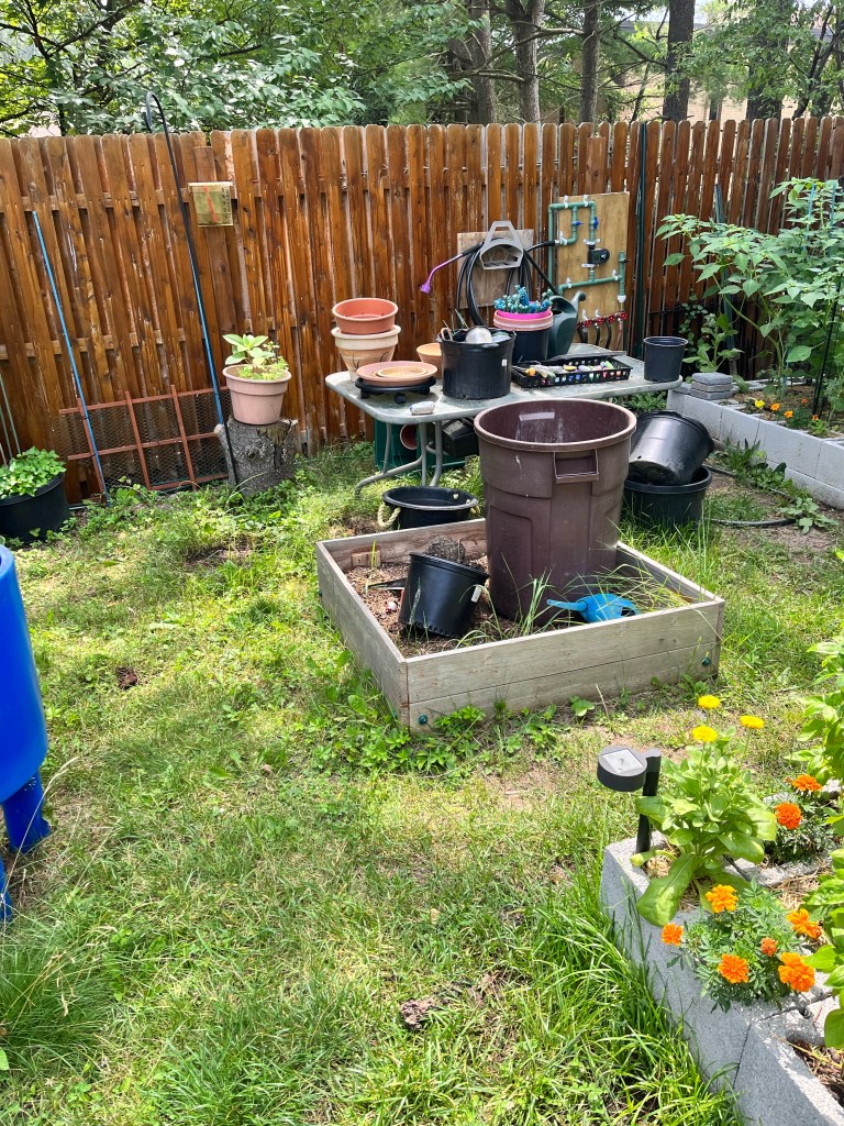 I’m hoping that the storage /workbench will corral some of the chaos in my wife’s garden. That glass table is what she currently uses to store unused pots and her garden tools / supplies.