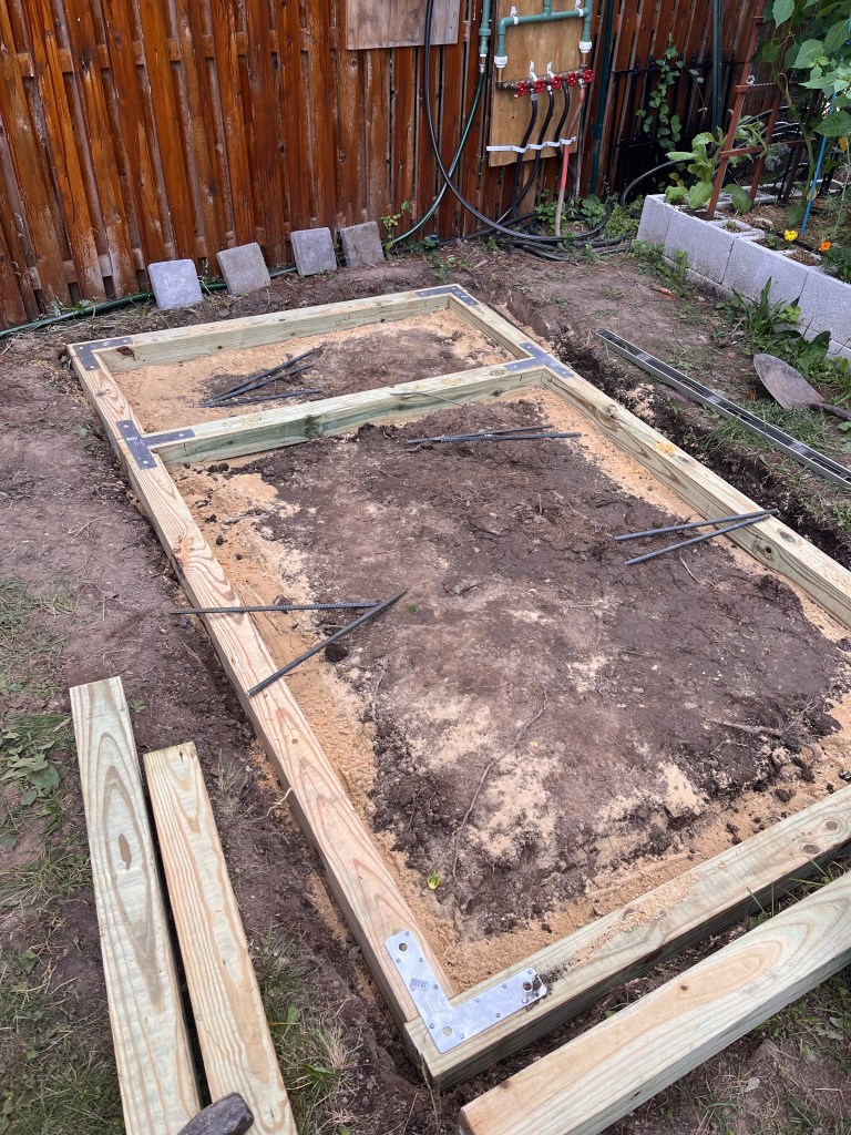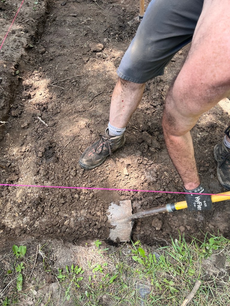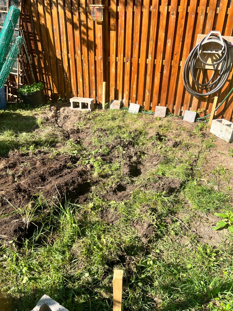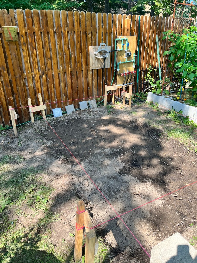 I probably should have put these up before I started digging. I needed two helpers to get them squared. I’m sure someone smarter than I am knows how to do this solo.