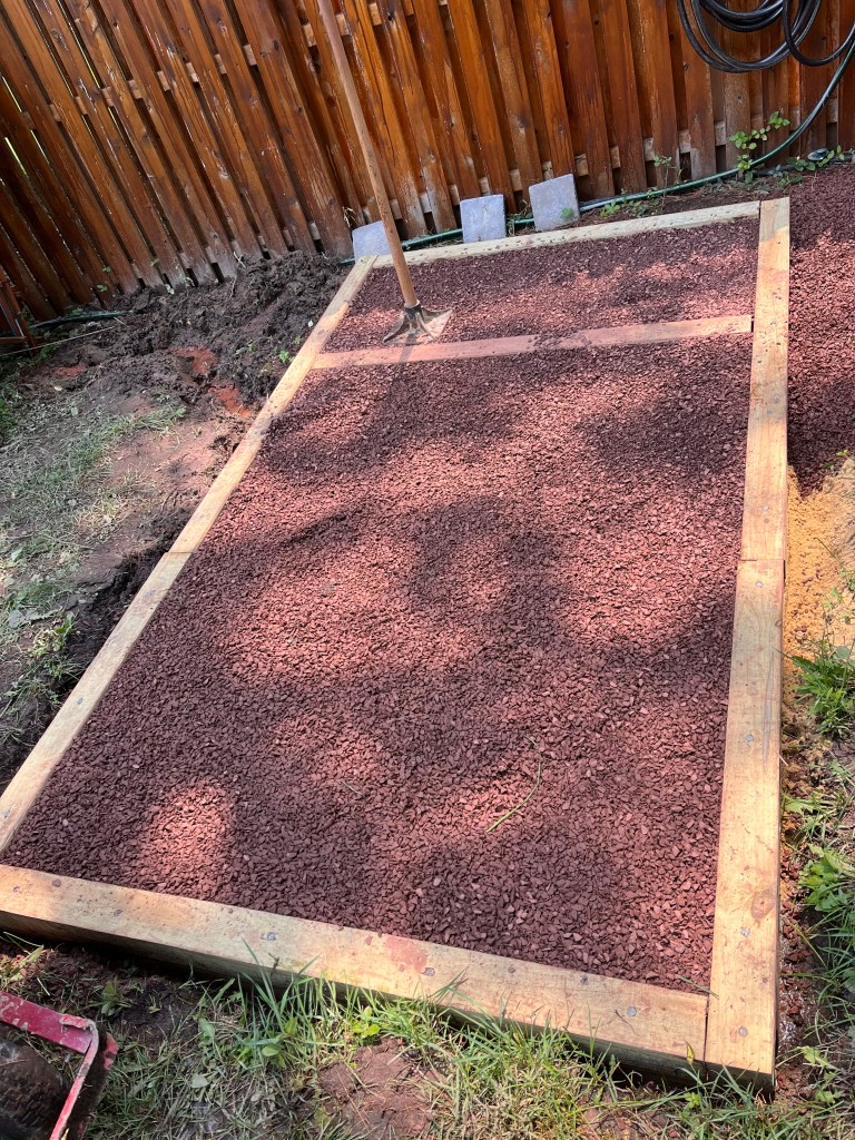 I tamped it down every few loads, so I’ve got a pretty solid base. I’m going to put pavers down on the patio section so the furniture doesn’t sink.