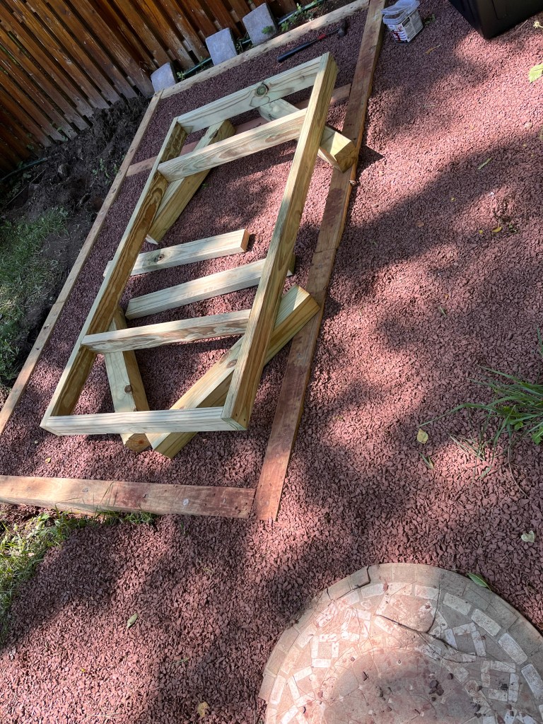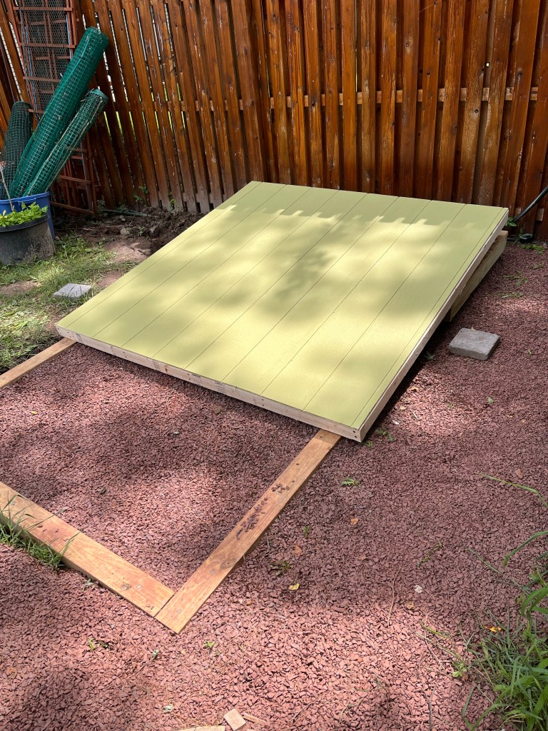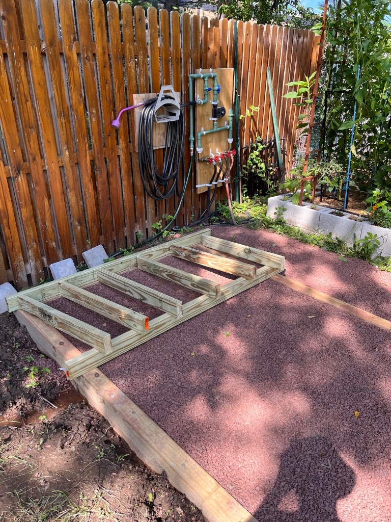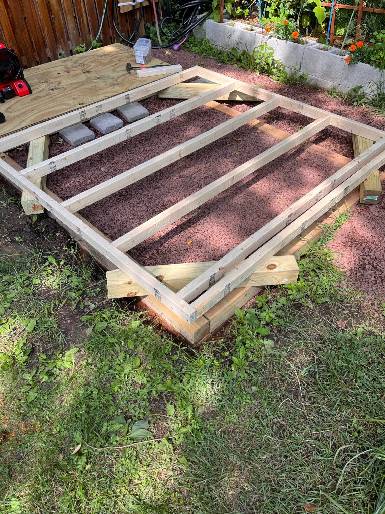 Today I built the floor for the storage unit. Framed with PT 2×4’s and decked with 3/4 PT plywood.