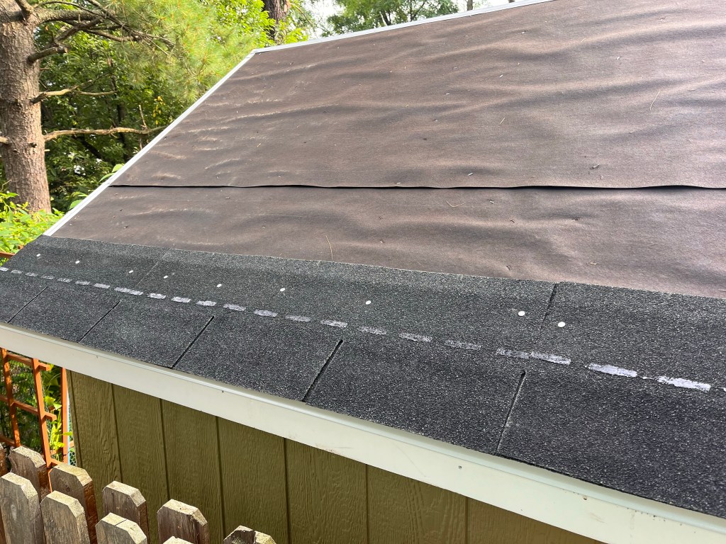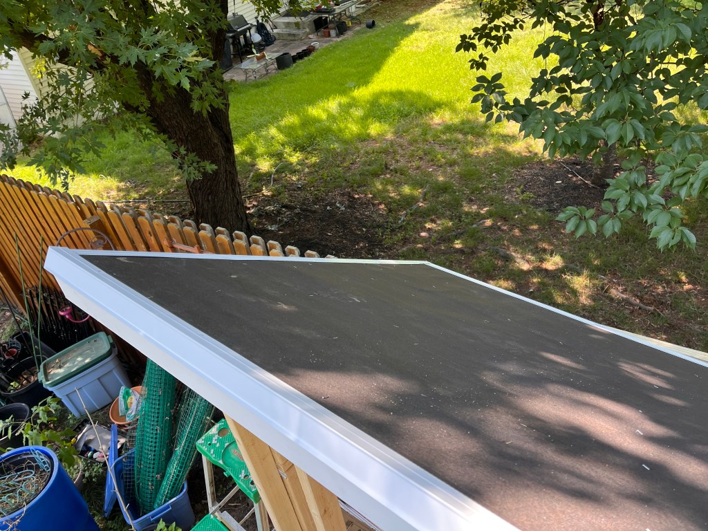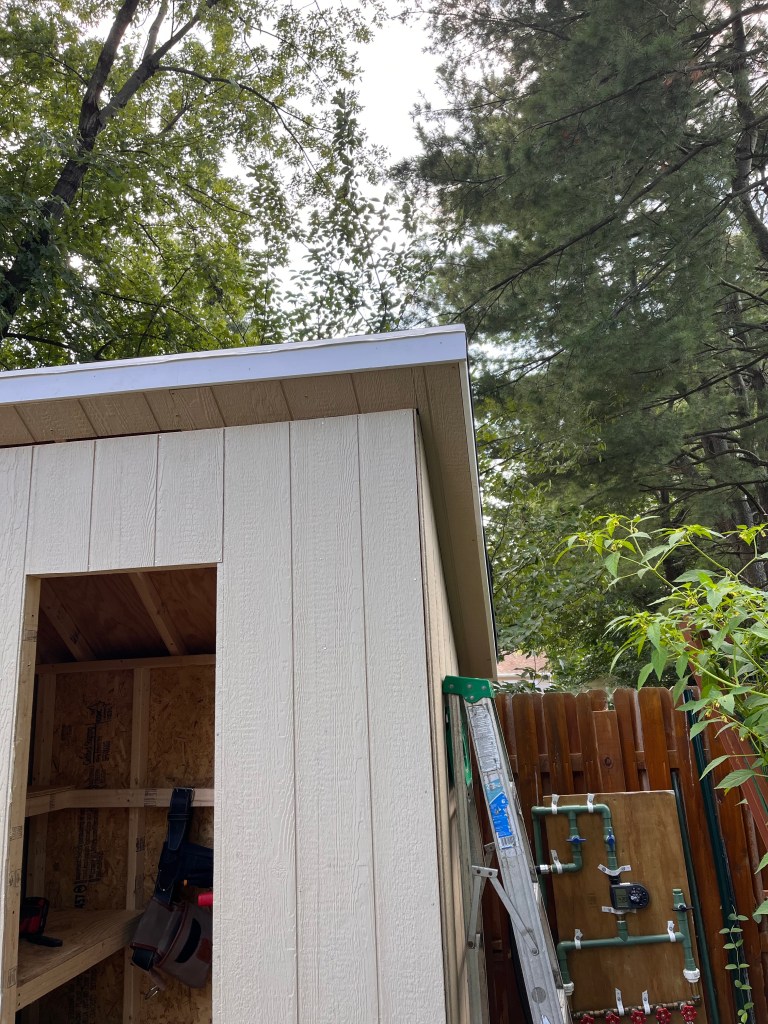 I put on roofing felt and aluminum drip edge before I had to go to work. It still needs the roof shingles.