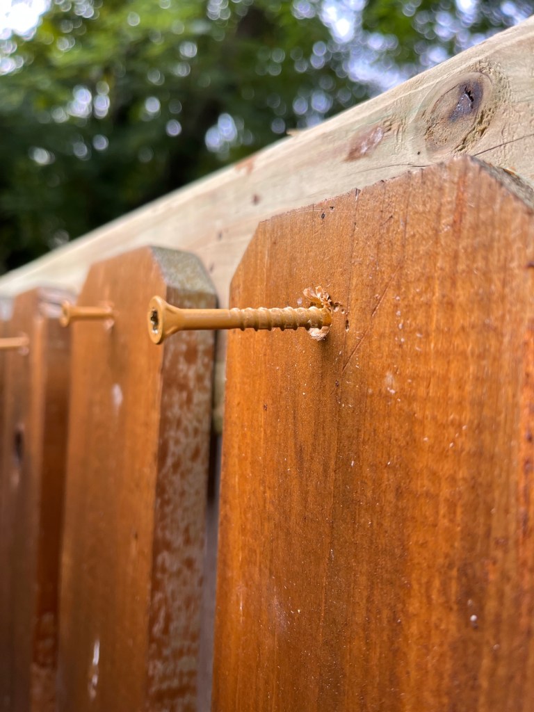 Anyway, I didn’t want to break the pickets on my two year old fence, so I installed some temporary reinforcement.