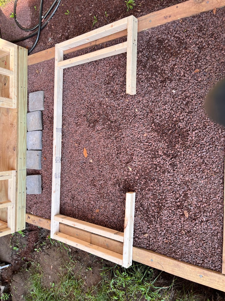 Ignore those 2×3’s across the top, those are being kept to the side to frame out the door. They are the two best 2×3’s I have left.