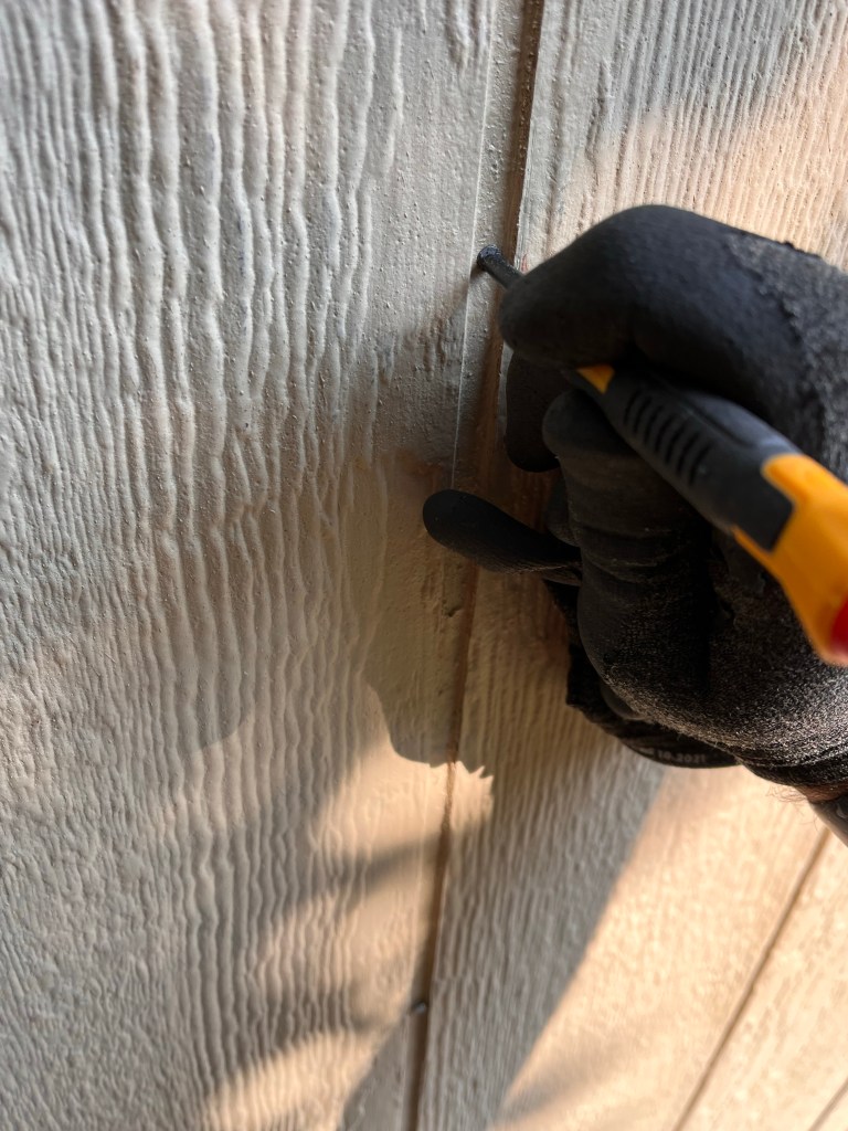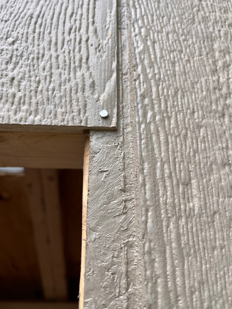 The grooves on the T1-11 are great for locating the studs, but terrible for driving nails.