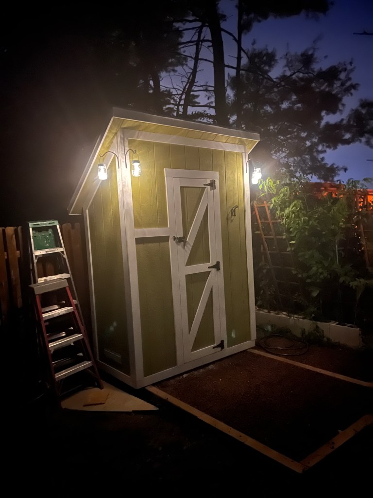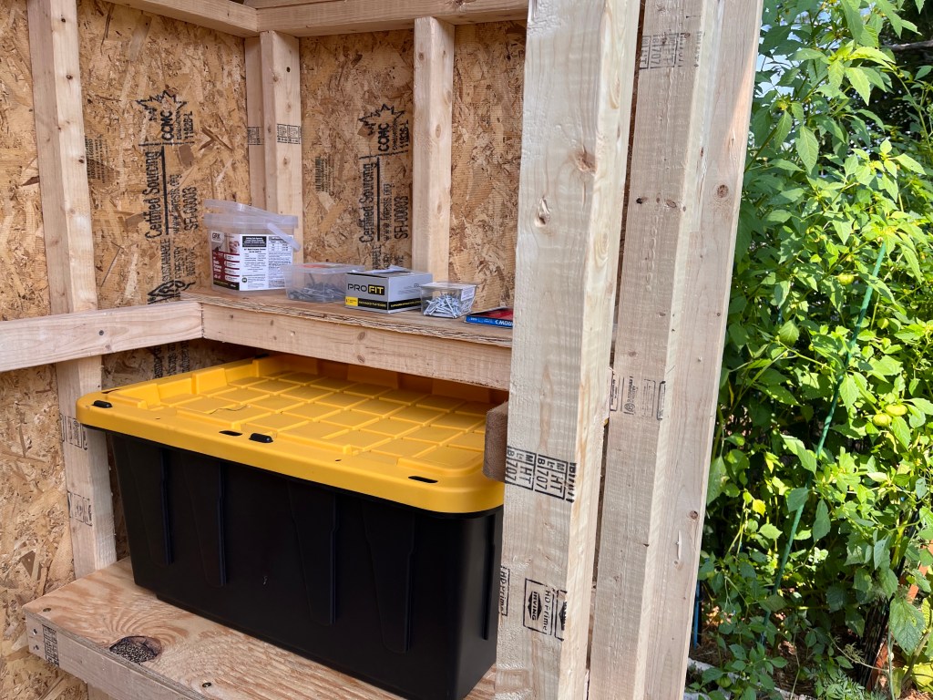 Birthday present for the wife this year is a space for working and sitting and storing tools and materials for the veggie garden. *
