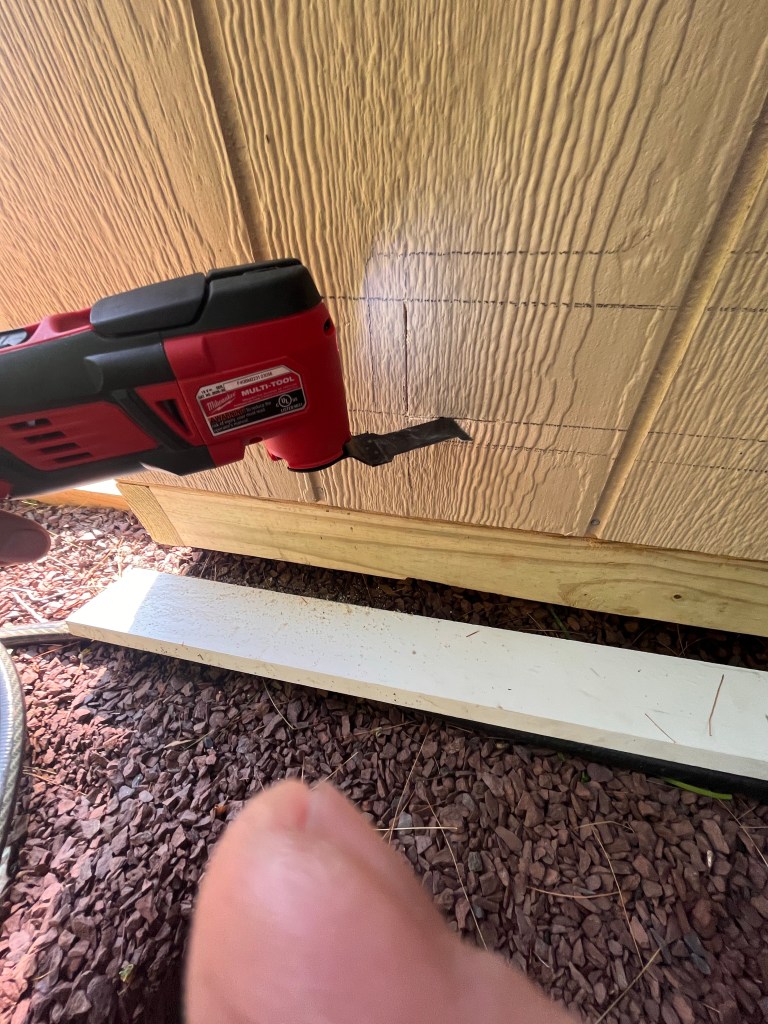 Since the sheathing is basically OSB, I need to protect the cut edges from moisture. I decided to use PVC trim boards.