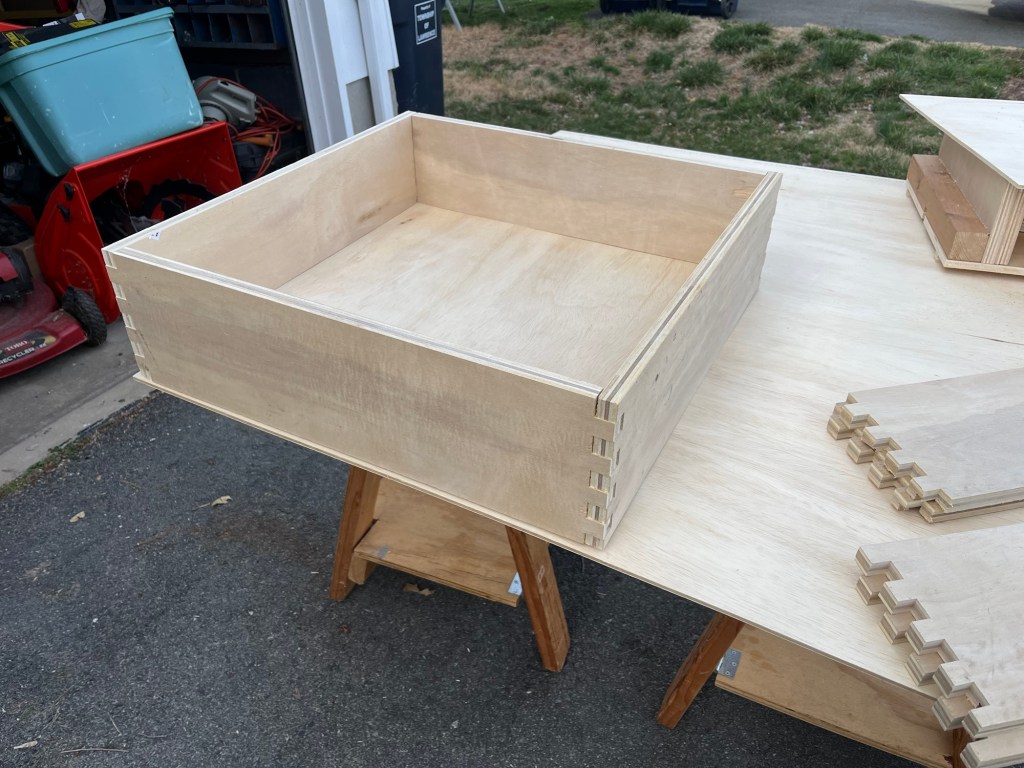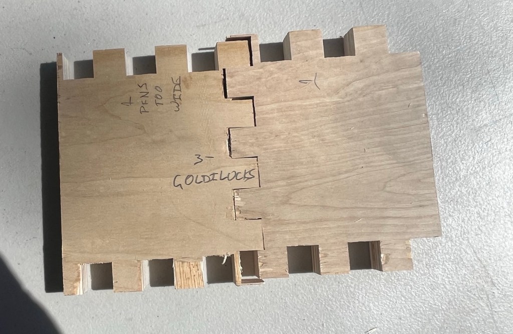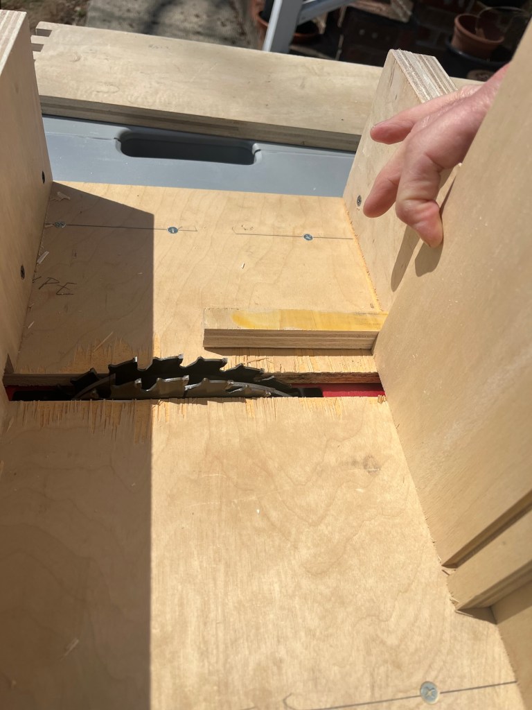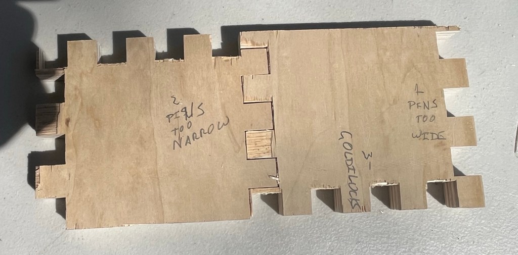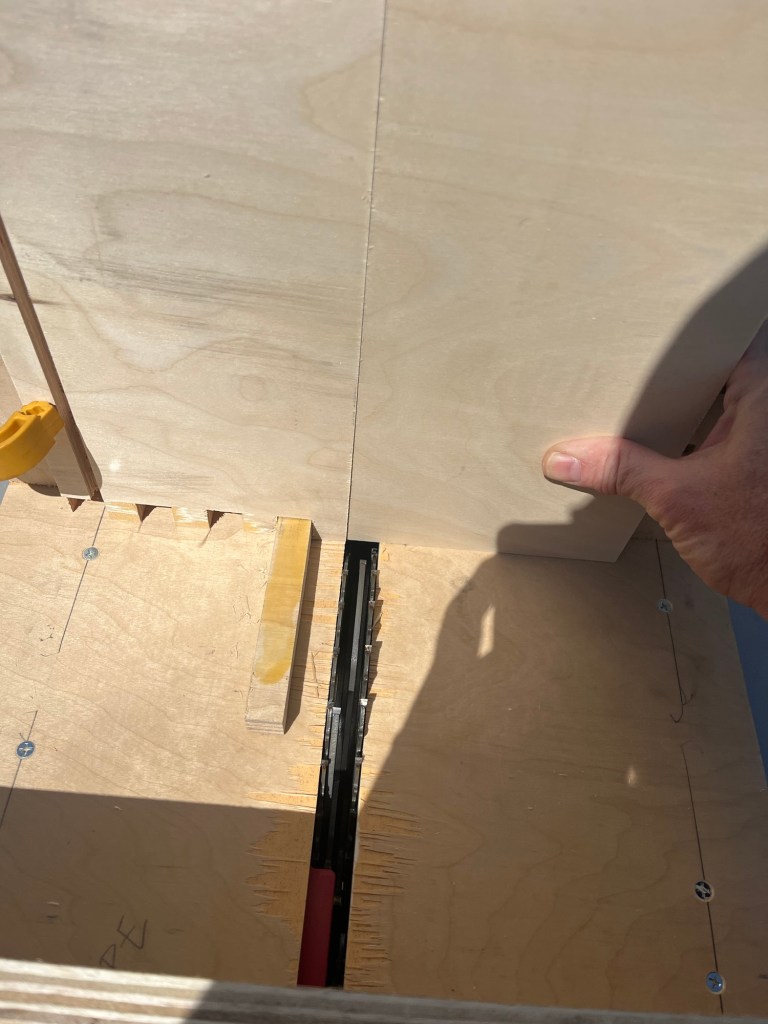 This jig is fixed. It can only make 3/4″ finger joints in 3/4″ plywood. I can see that I’ll have to make a second version for 1/2″ ply or I’ll find a way to make a universal version. (There’s that iterative engineering again!)