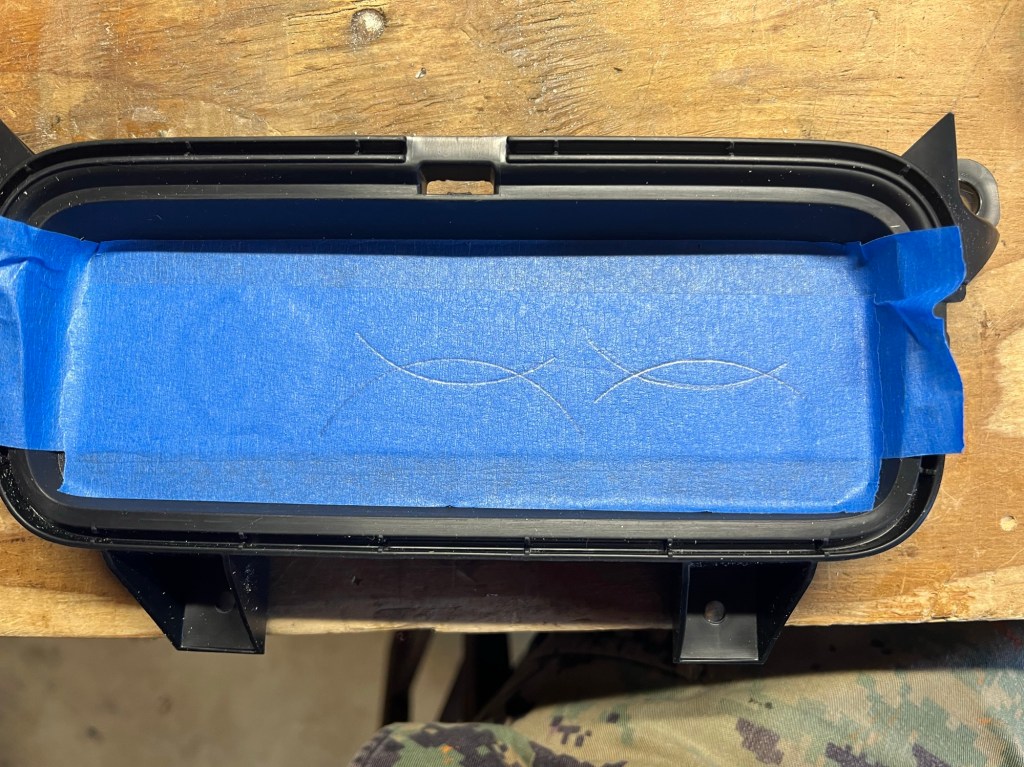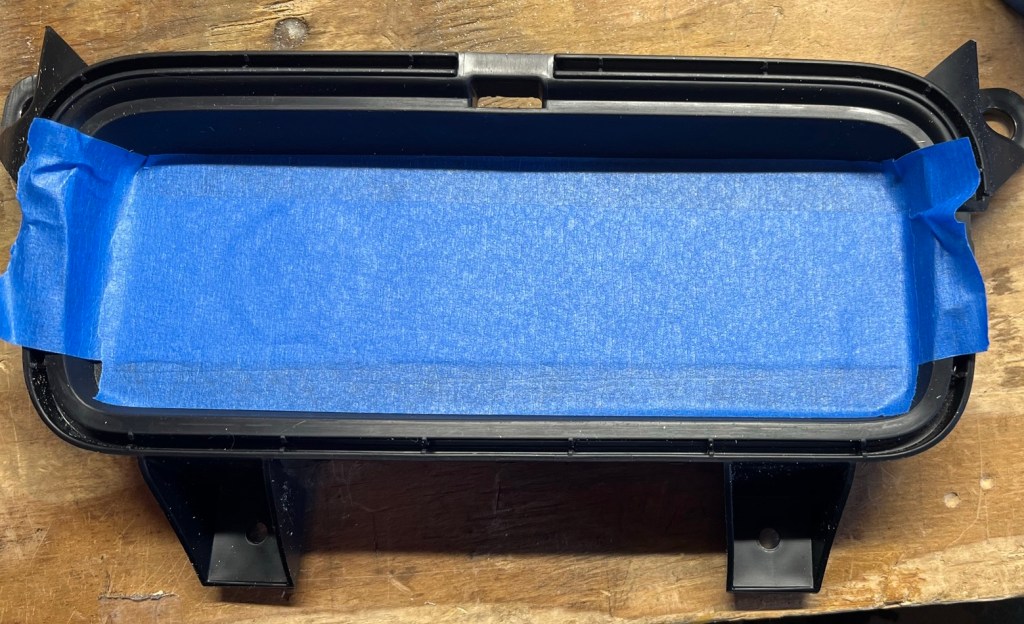 I know I’m going to have to adjust this, but I’m going to make this panel out of sheet metal and attach it to the rubber pad below the three power points on the center console.