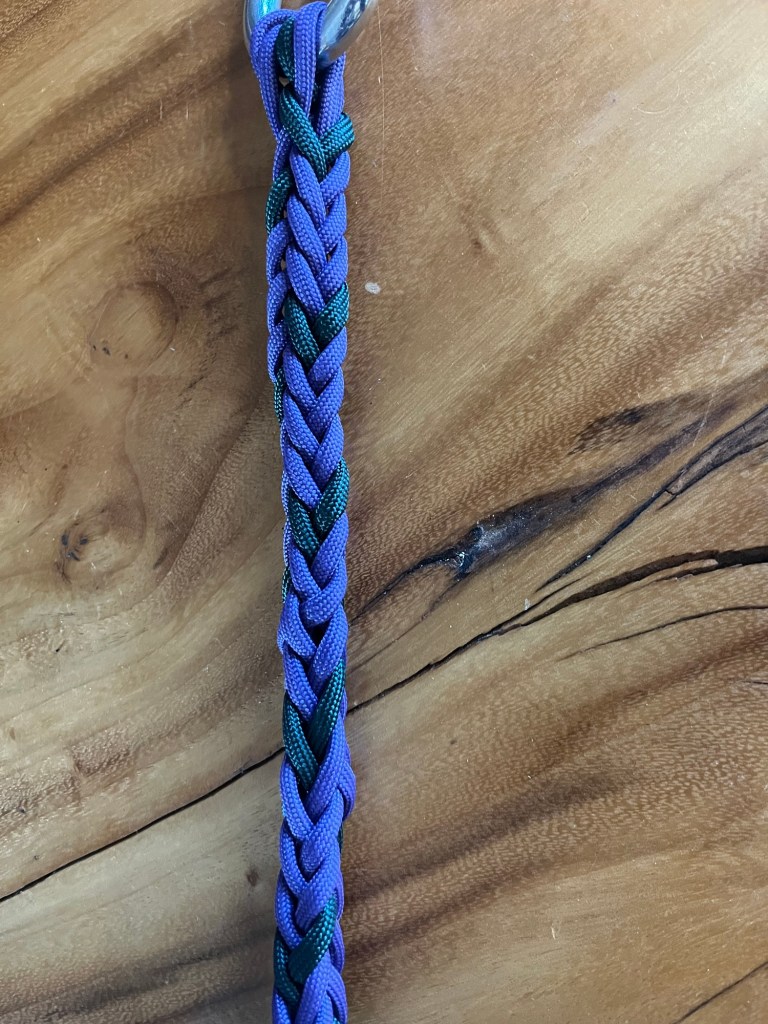 So far, the eight strand herringbone braid is my favorite braid. The biggest reason is that when it’s evenly tensioned, the finished braid is square in cross section. It’s quite striking visually and feels very interesting.