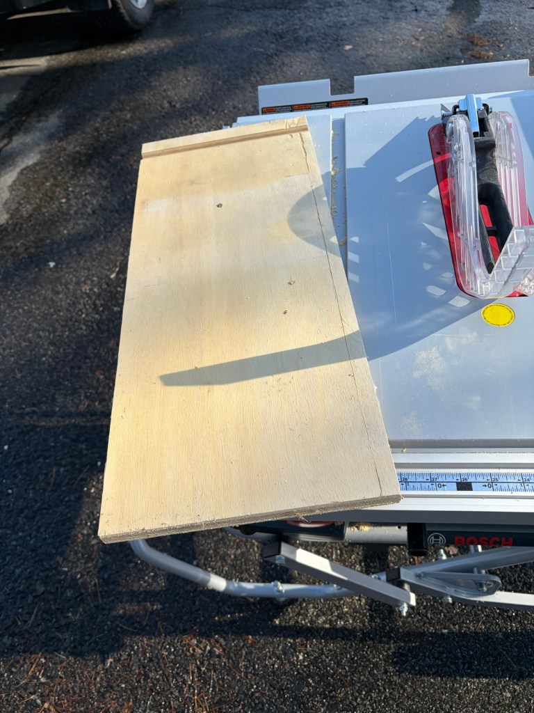 A piece of 3/4 plywood will allow me to put holes anywhere I want to, so I grab a a scrap and cut it to match the table.