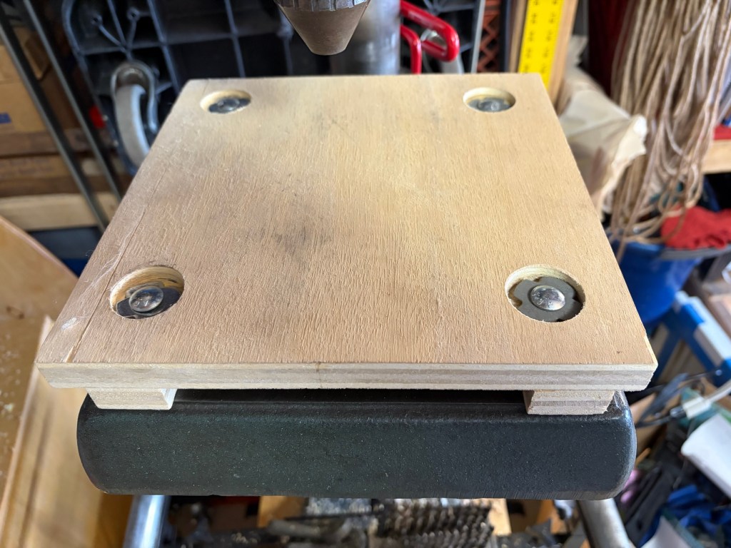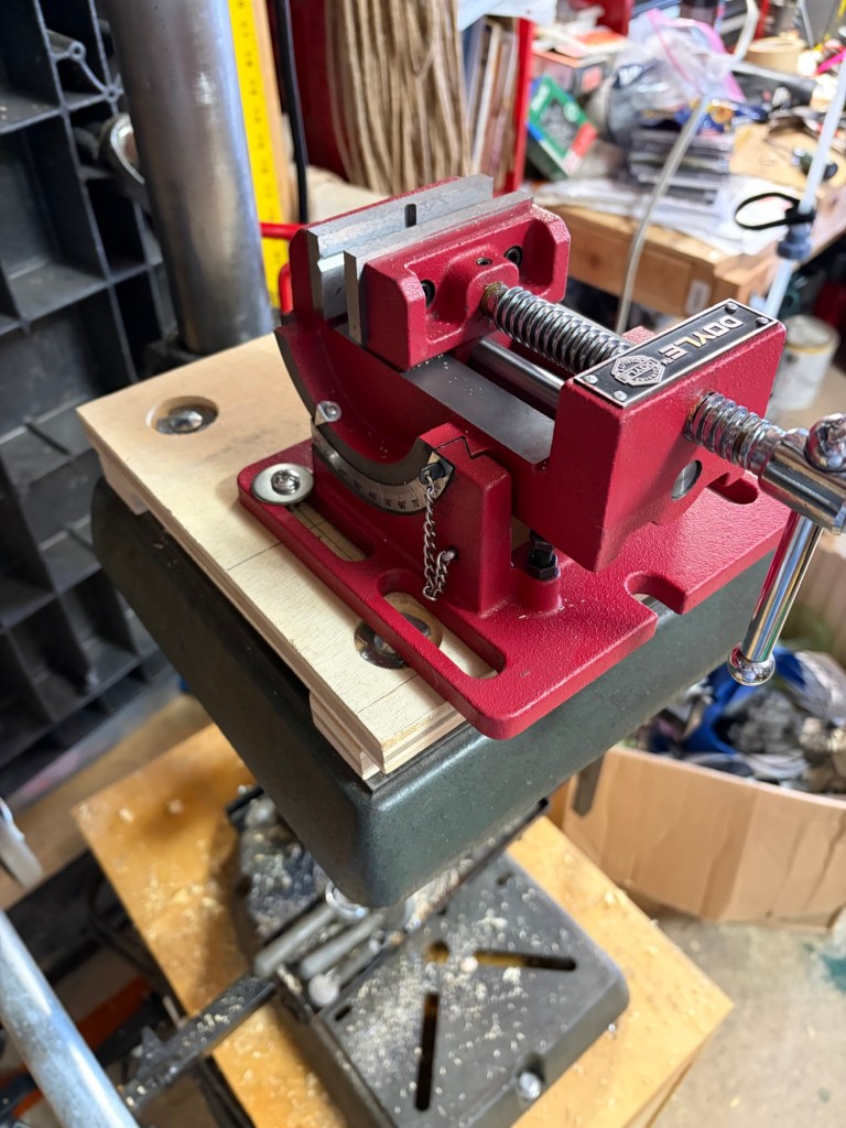 But now I need to be able to secure the vice to the drill press table and the hole on the vice don’t line up with the holes on the table at all.