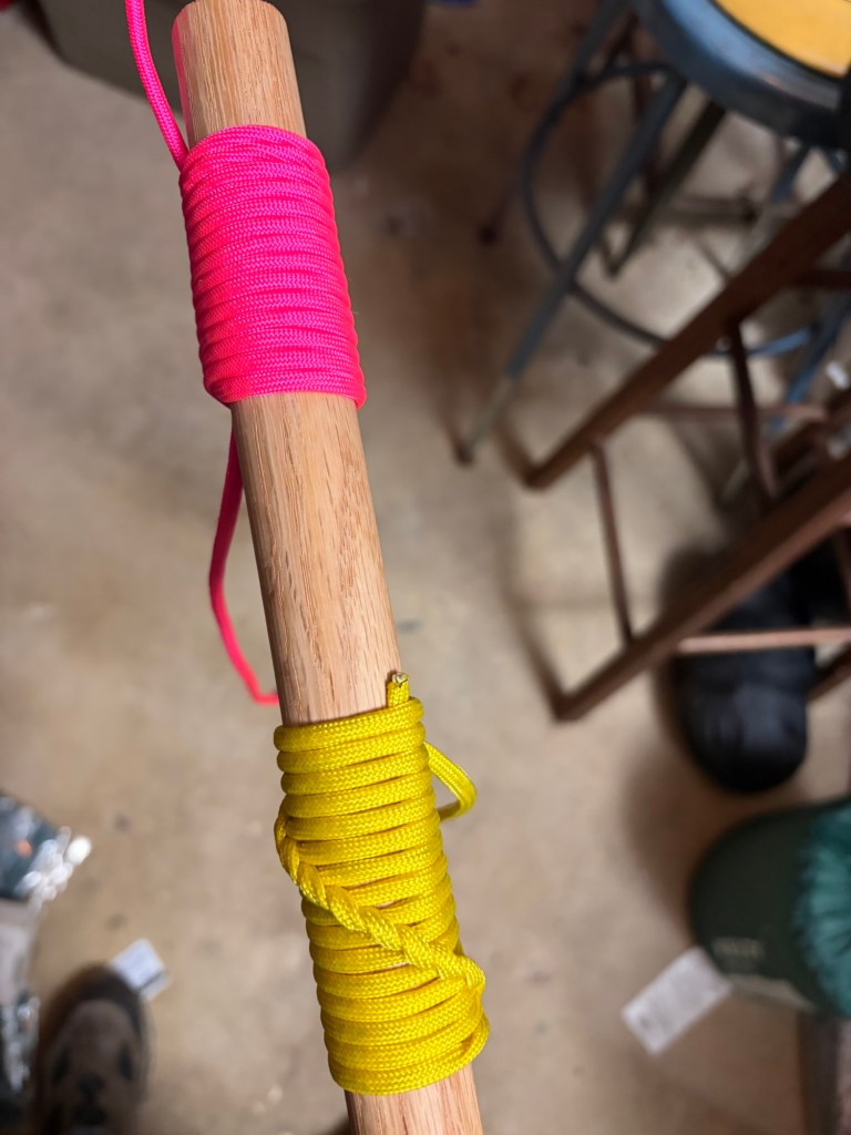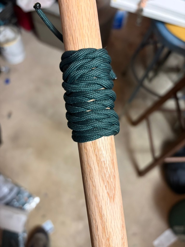 The West County Whipping (ABOK 3548) makes a nicer handle (again, in my opinion) because it is symmetrical. The half knots on each side mean it isn’t round, but it is symmetrical.