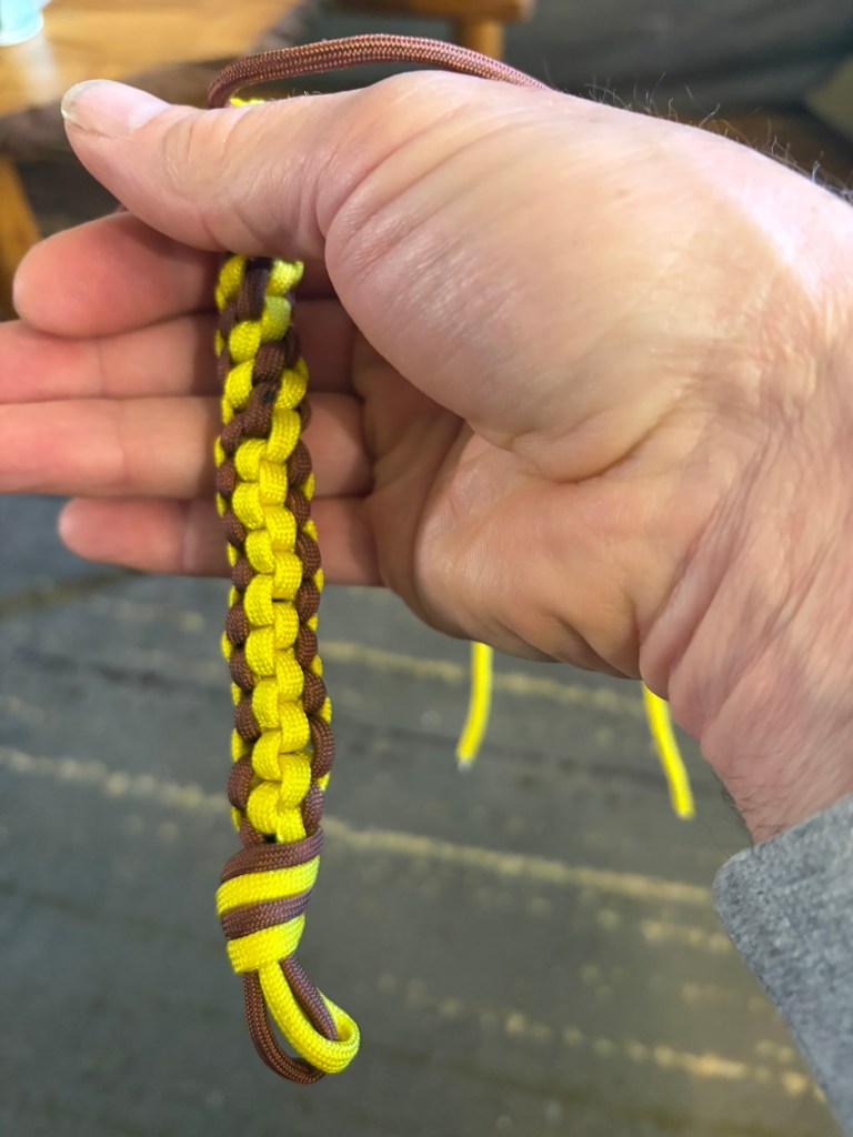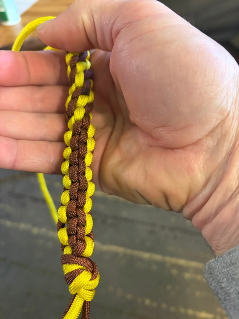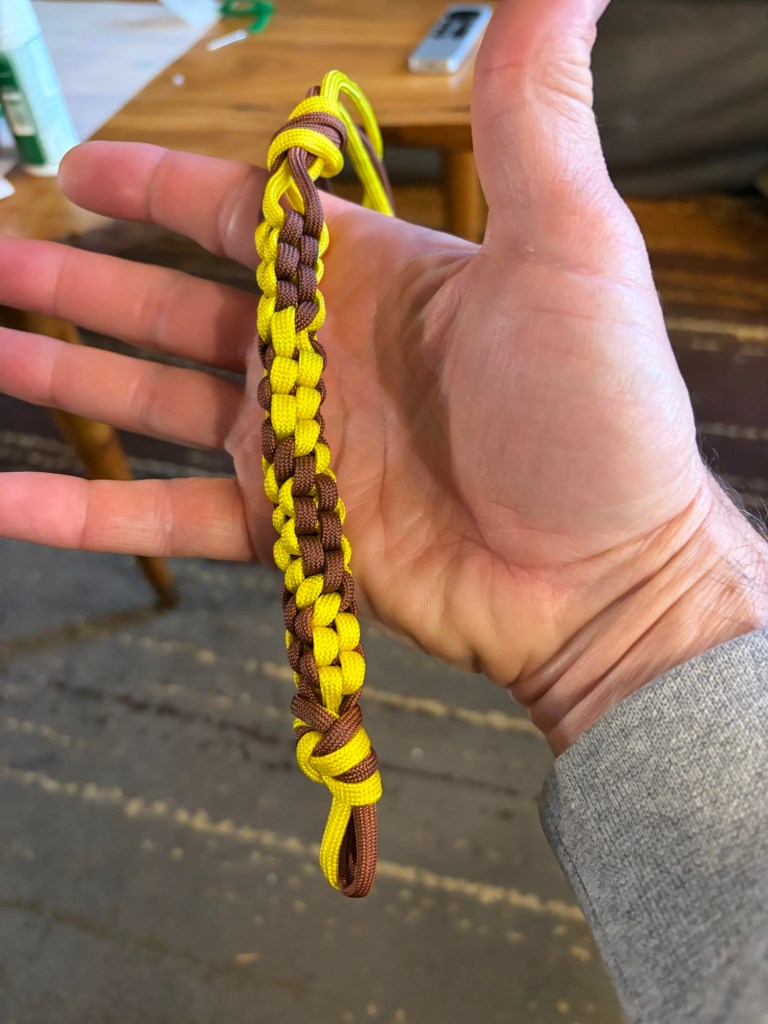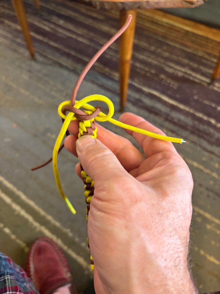 Every kid who has ever gone to a summer camp knows this knot. Tied with annoyingly slippery plastic lace to make a key fob, it’s sometimes called a gymp.
