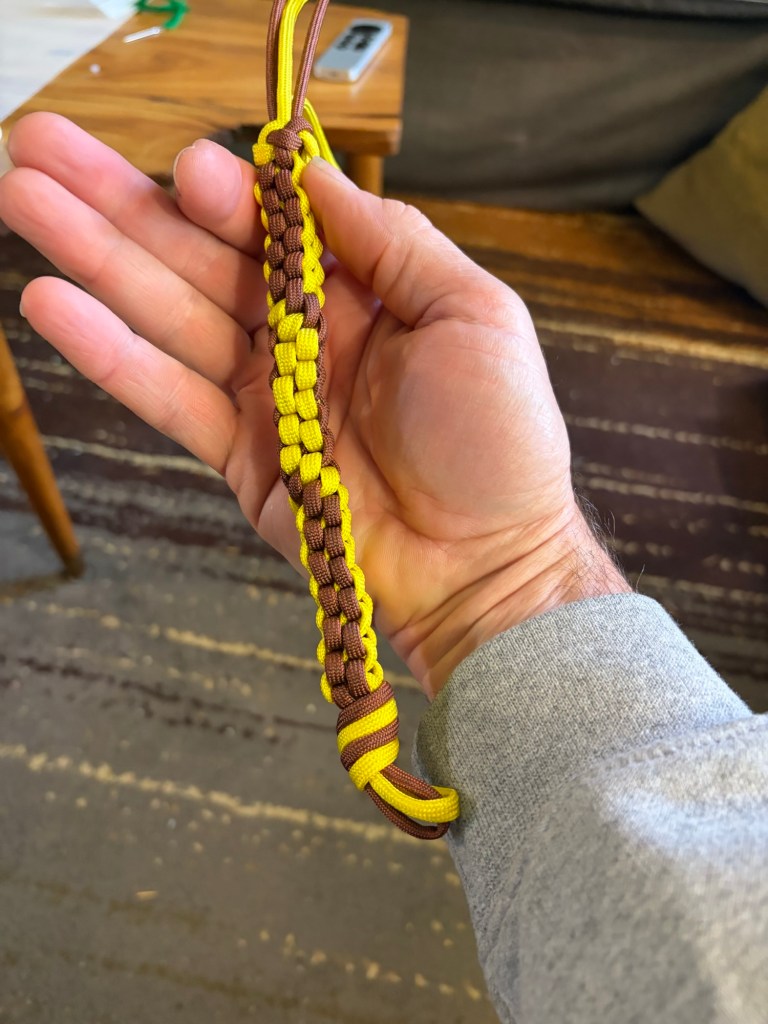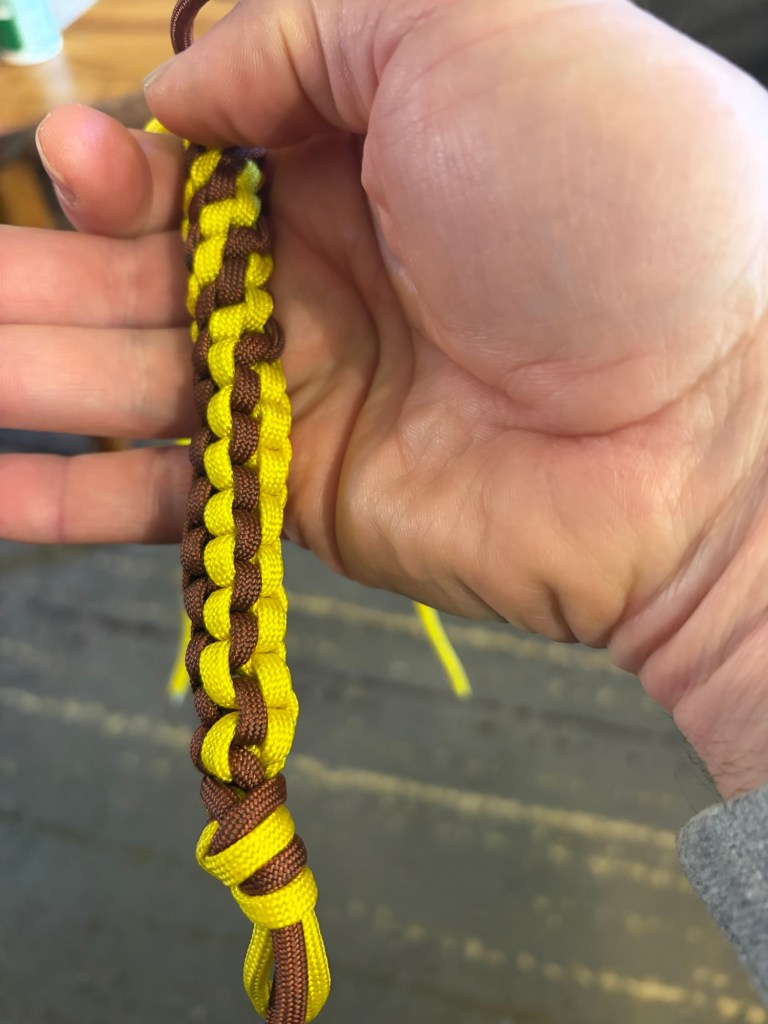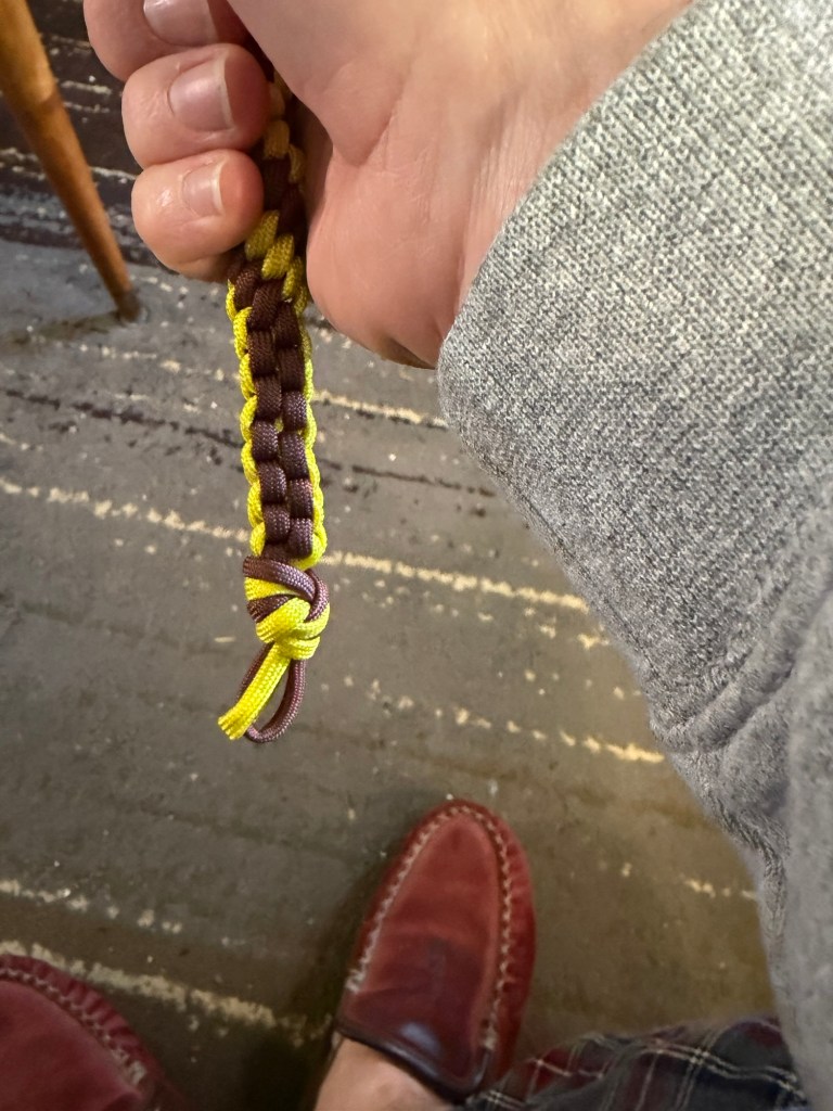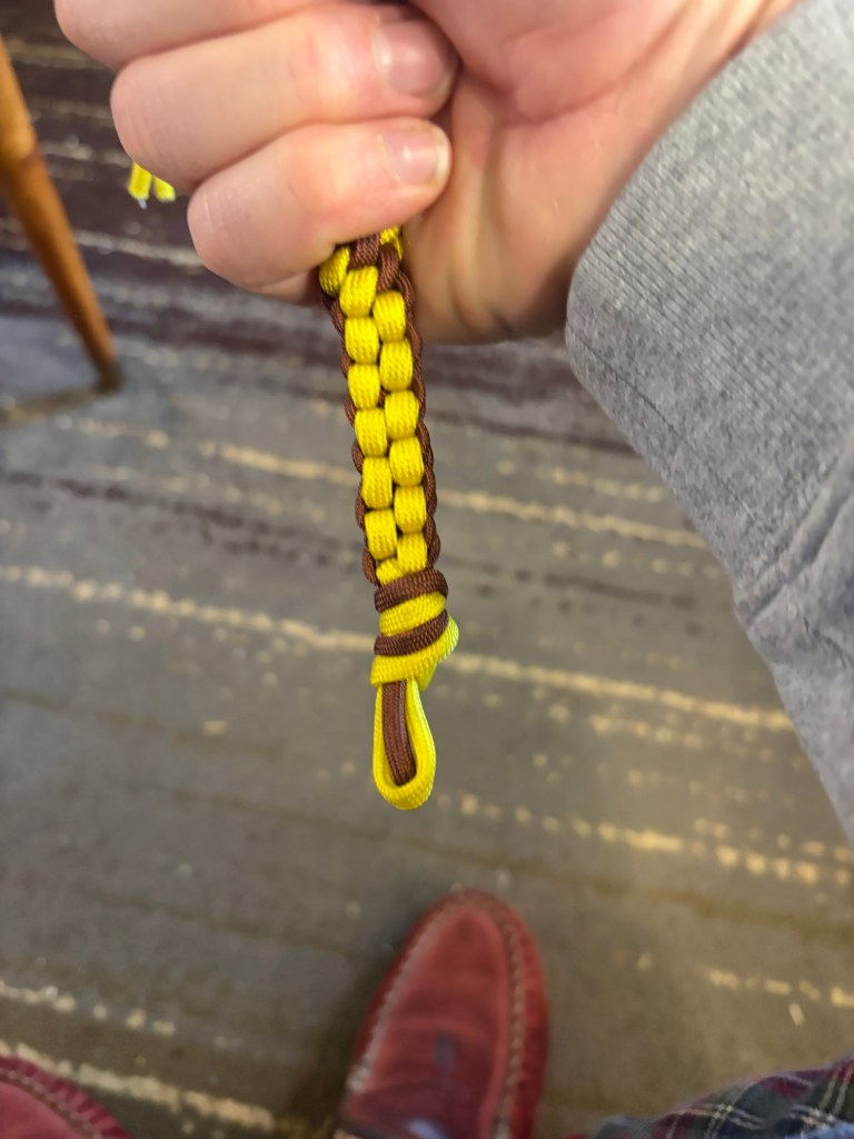 Every kid who has ever gone to a summer camp knows this knot. Tied with annoyingly slippery plastic lace to make a key fob, it’s sometimes called a gymp.