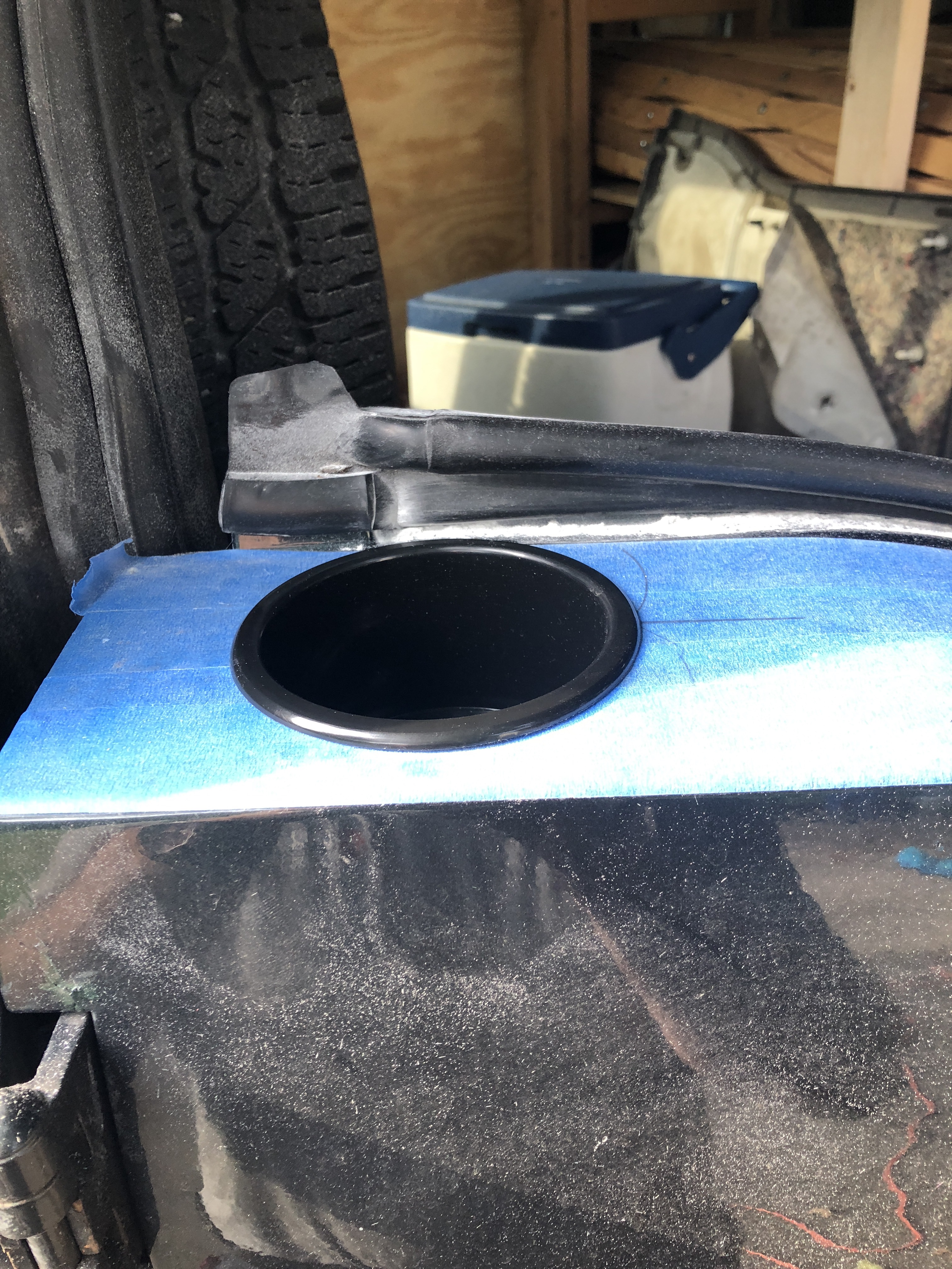 - Dry fit cupholder. If it doesn’t fit properly, enlarge the hole with the rasp or file.