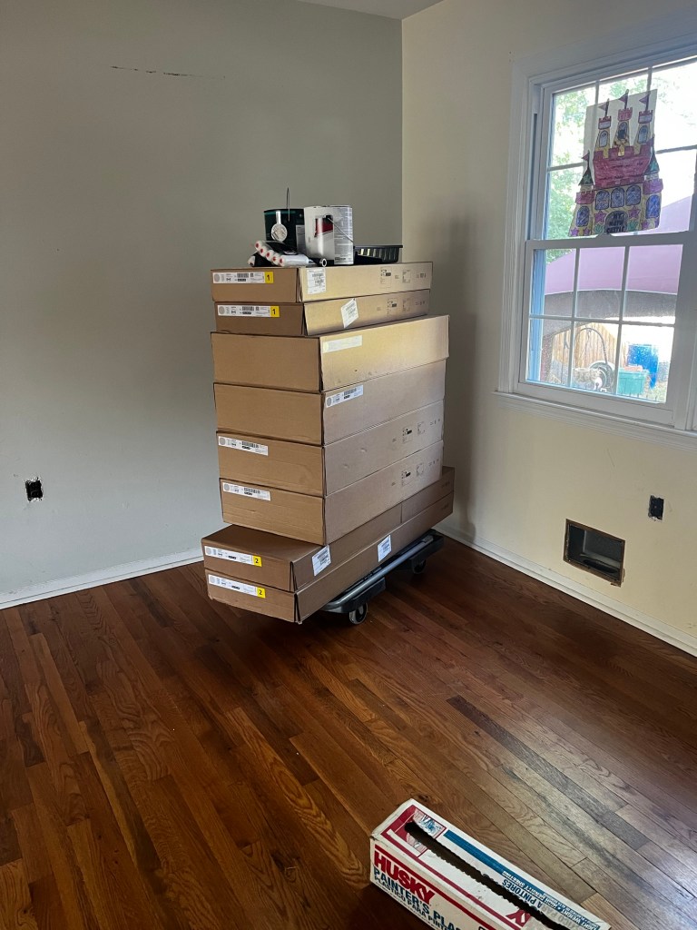 Between the uppers, we’ll have a 62” wide flat space for decor or serving. Of course the cabinets will be lit and controlled by HomeKit. And I’ll be adding another speaker to the system. Now every room on the first floor except the powder room is wired (wirelessly) for sound.