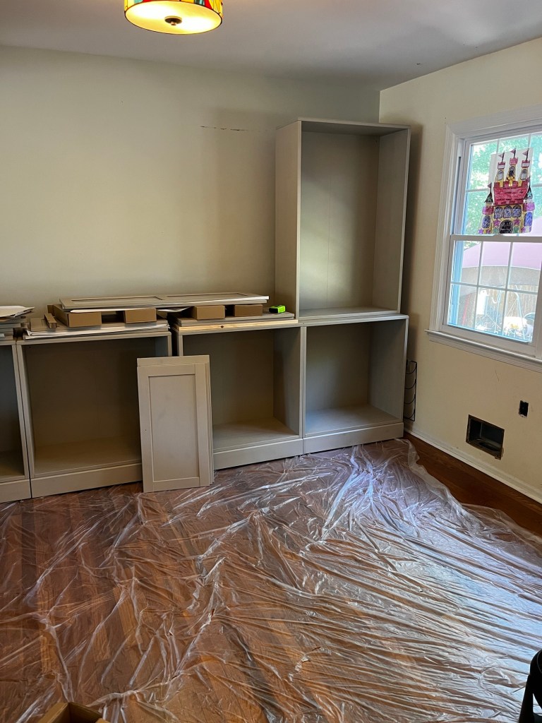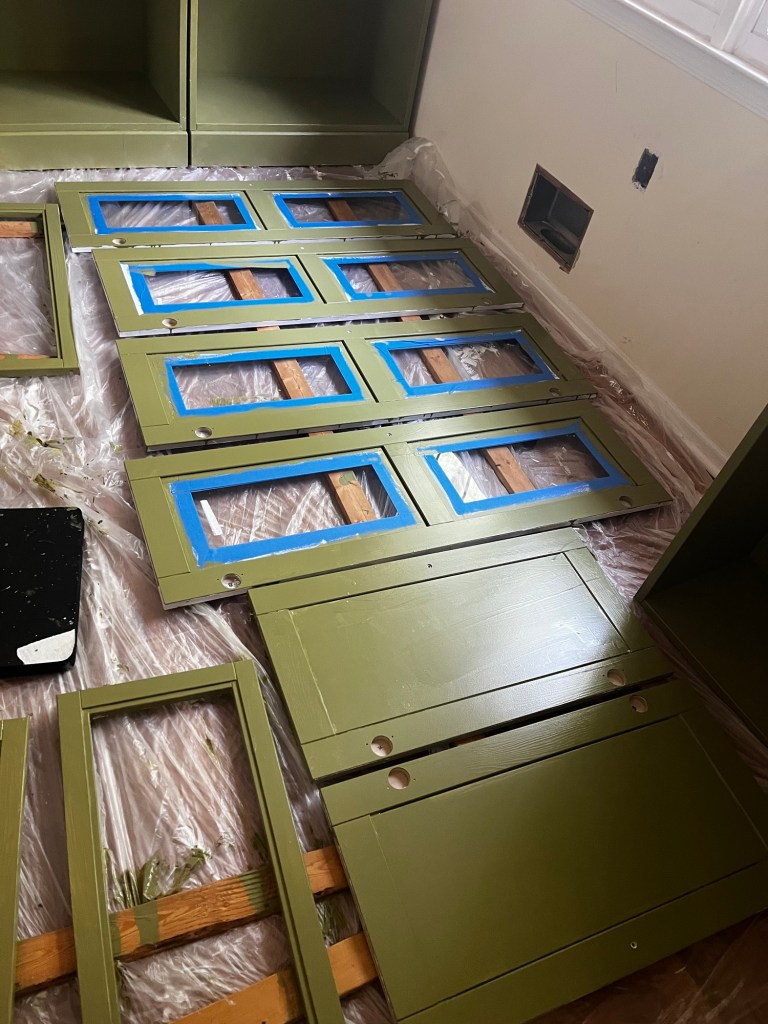 So there wasn’t really enough room to paint all the cabinet parts at one time. I decided to paint the cabinet boxes today.