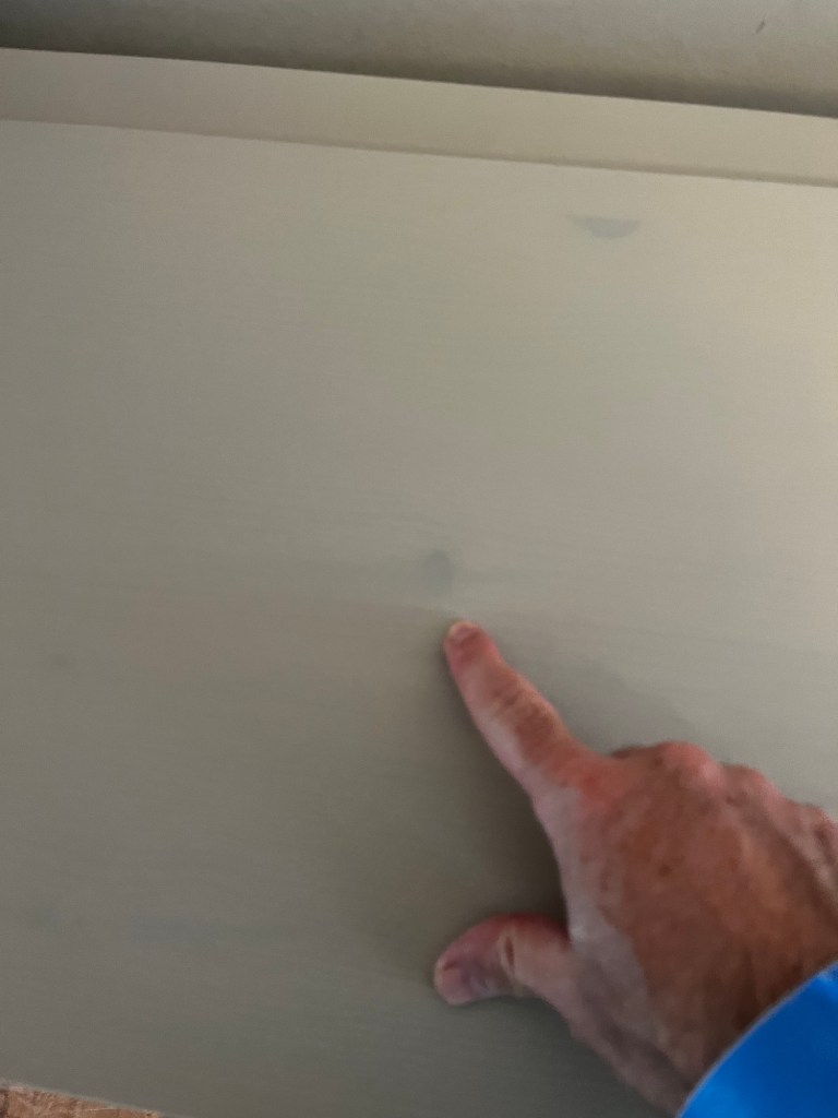 So I’m repainting the cabinet doors after sanding & cutting the worst of the runs off.