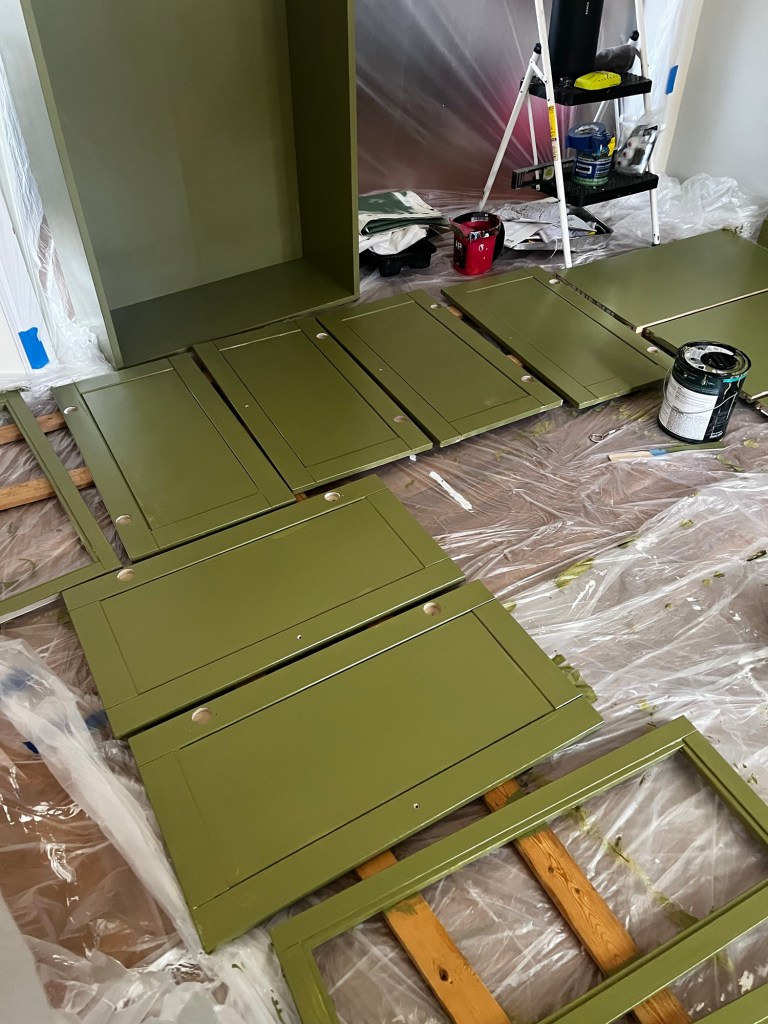 If I ever paint cabinets again, I’ll wait for the weather to allow me to work outside where I have enough space to do it effectively.