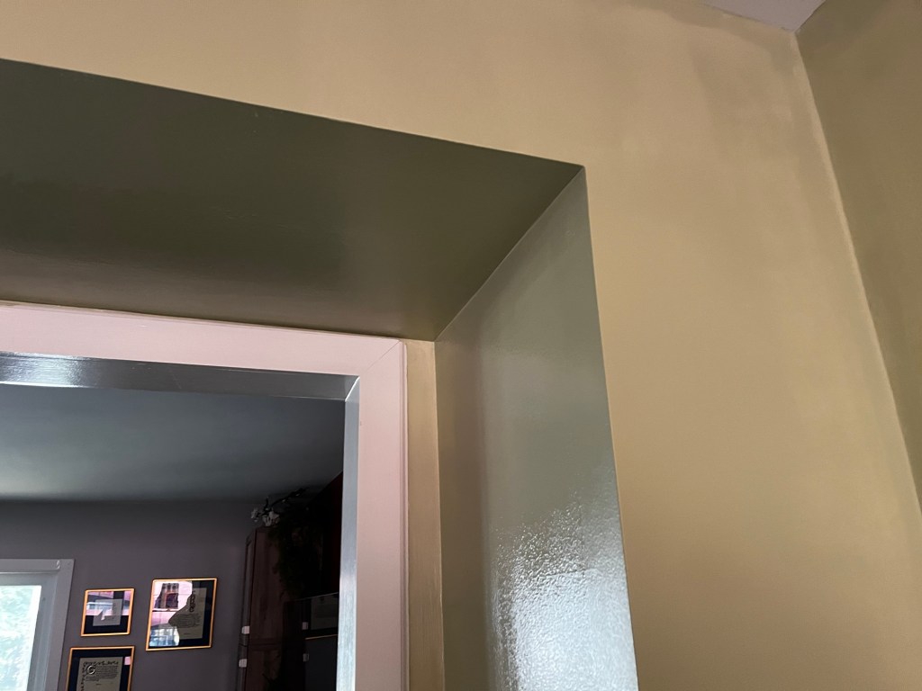 I’ve always painted the underside of soffits like the ceiling. But I ran across an article recently that showed soffits painted to match the wall. I decided to experiment