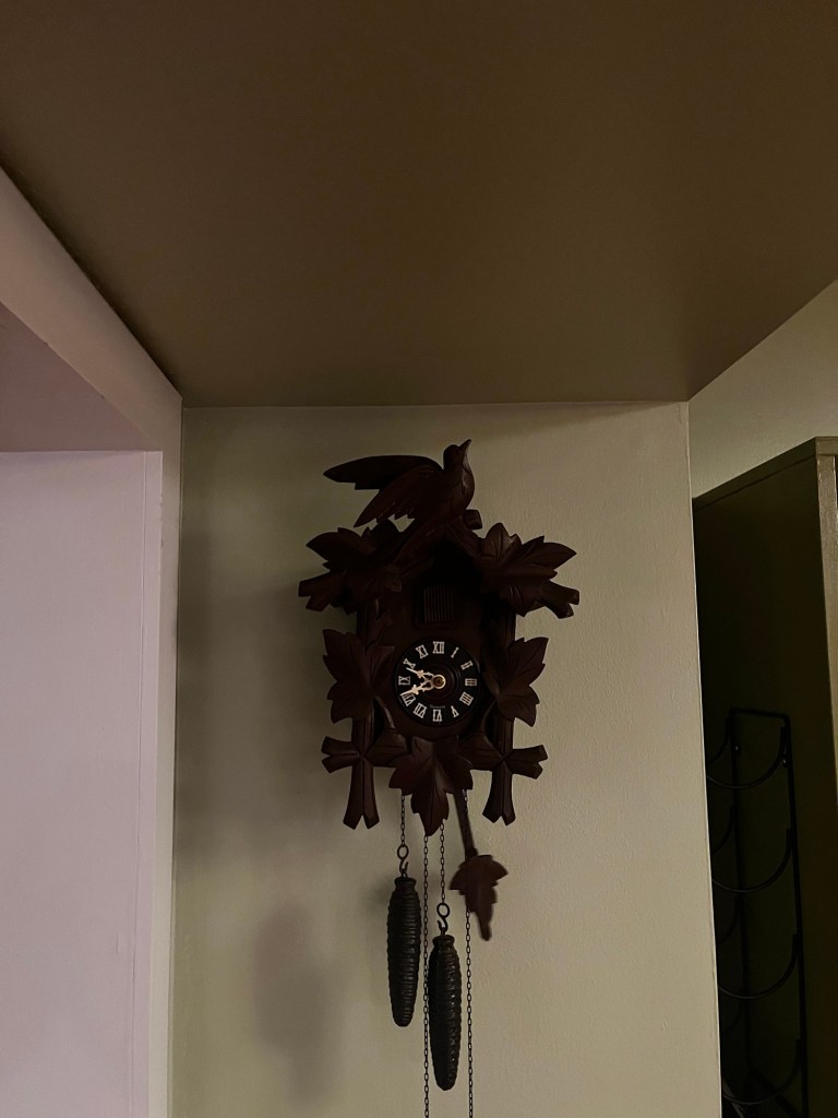This was purchased in occupied West Germany by my wife’s great uncle as a gift for his mother (my wife’s great grand mom). My wife remembers it hanging in her Mom-mom’s house when she was a child, but her younger cousins don’t . At some point it came off the wall and was stored badly in a closet. My wife inherited it when her grandmother passed. It was stored, just as badly, in a closet in our house for 12 years. I had it repaired for her birthday. It fits perfectly in this spot and is visible from three rooms.