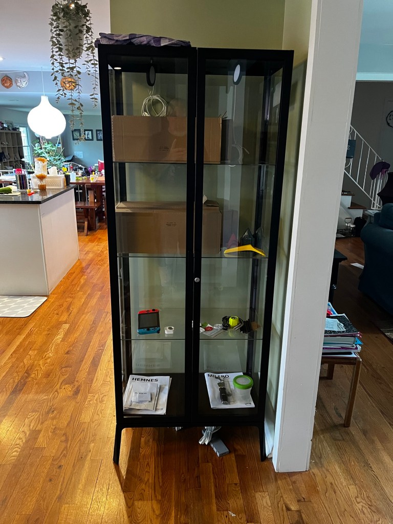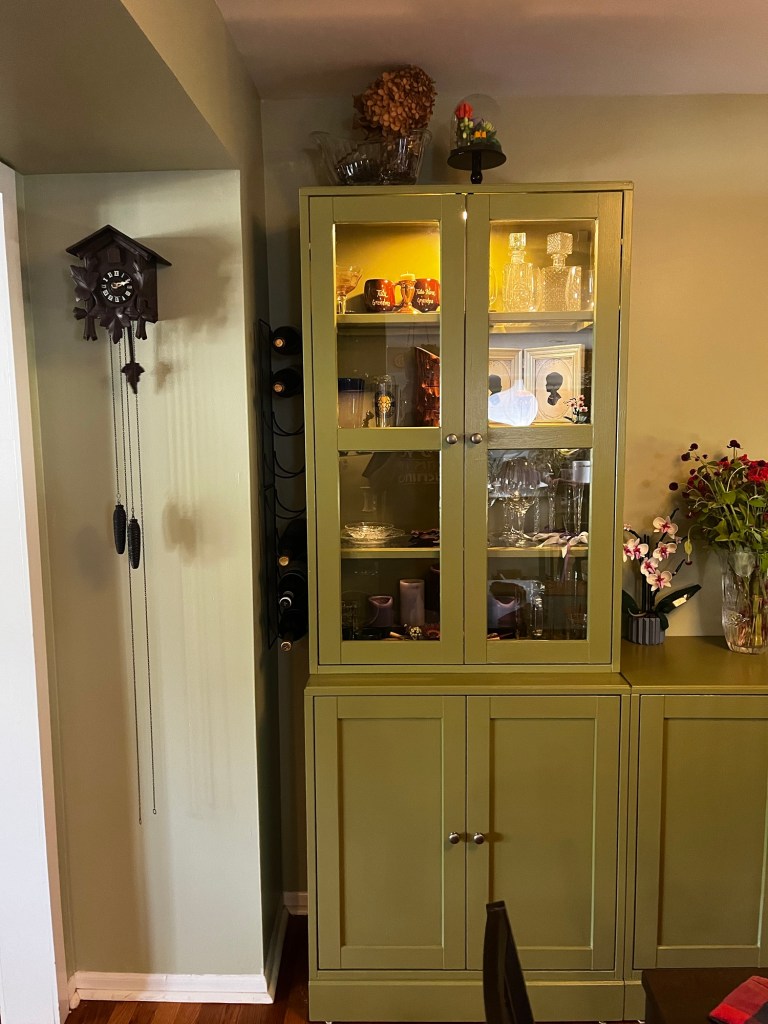 I decided on the Havsta cabinets because they are made of solid wood and I like the staggered look between uppers and lowers. Storage is going to be four lower cabinets with solid doors and two upper cabinets with glass doors.
