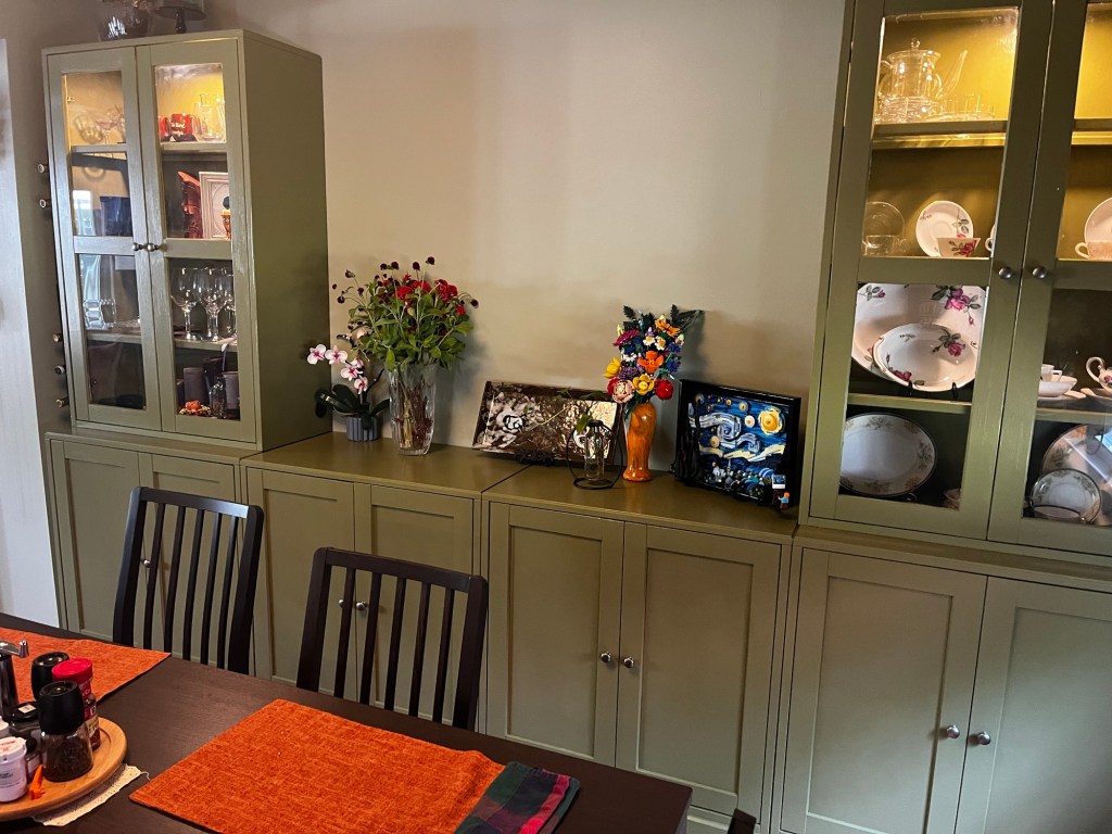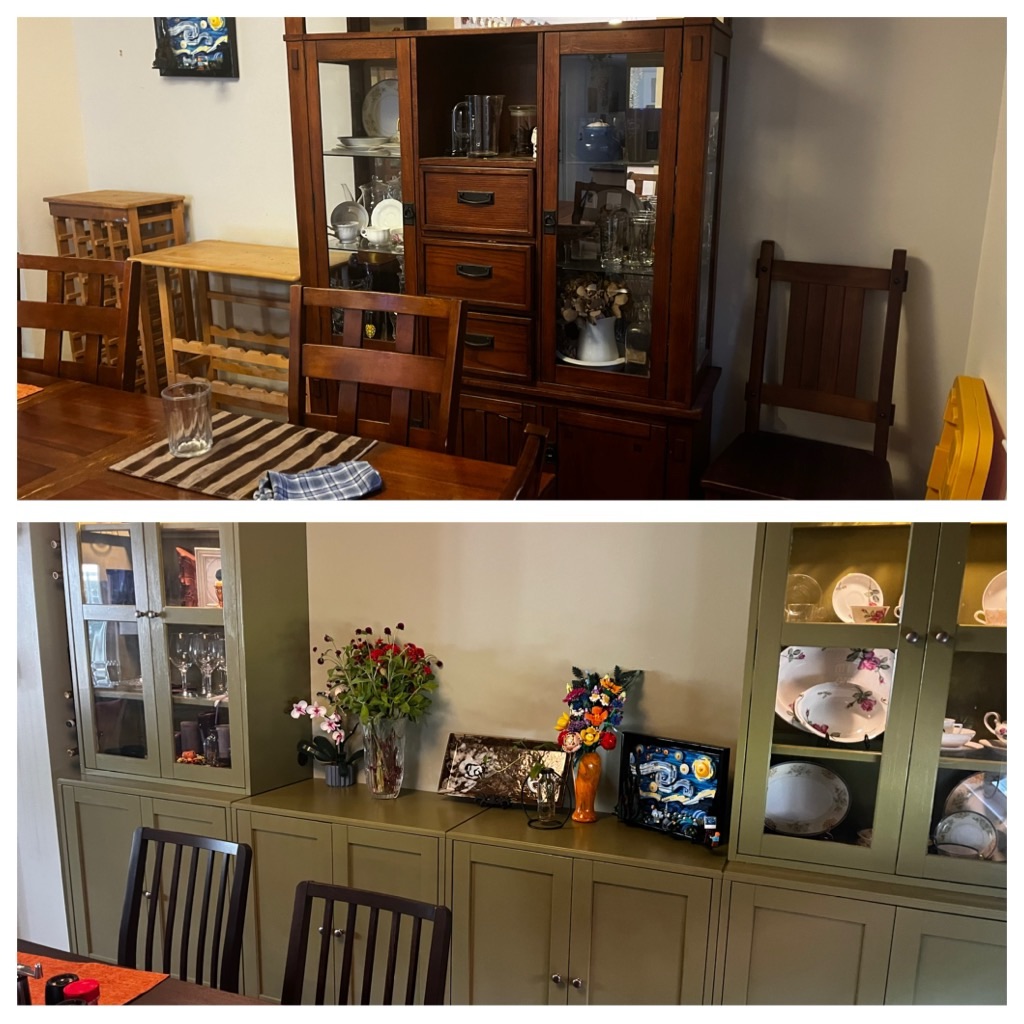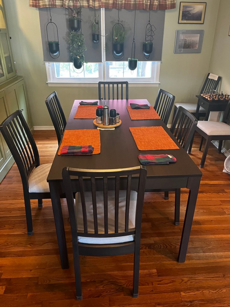 After all is said and done, I’m pretty happy with this project. The new table actually fits in the room. There’s enough storage for all the things I want to keep in the dining room.