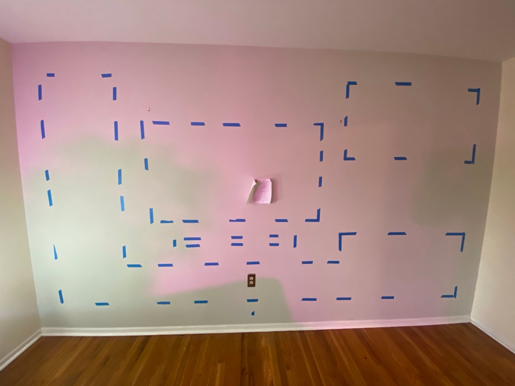 I wanted to see how things would fit, so one morning I decided to tape out the cabinets.