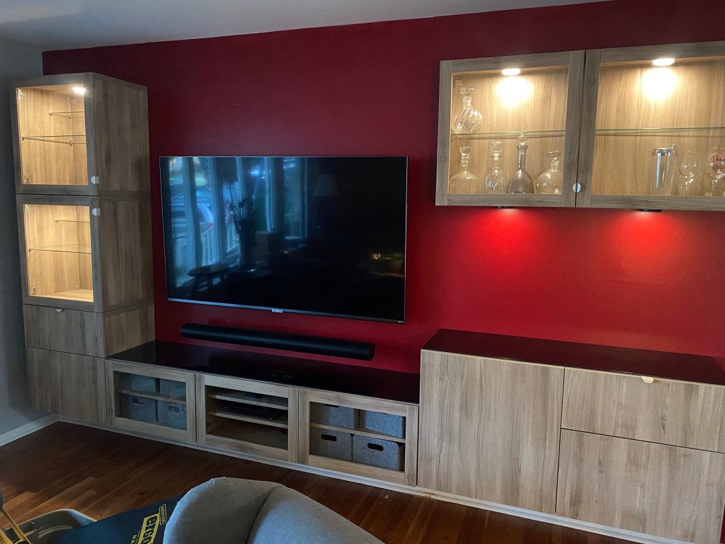 IKEA has an several online planning tools which allow you to visualize what your build will look like and also keep track of all the parts you need. I went through several iterations before I settled on this one as a decent amount of storage with a room for good sized television .
