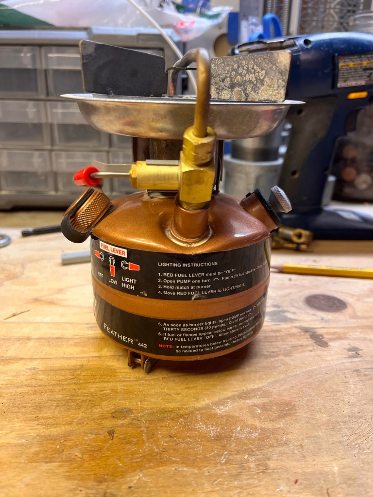 Continue reading “It’s called finish for a reason.”This is the first backpacking stove I ever bought (Spring 2001, probably). And my first liquid fuel Coleman appliance. I had a fuel leak below the valve, so it’s time for a rebuild.